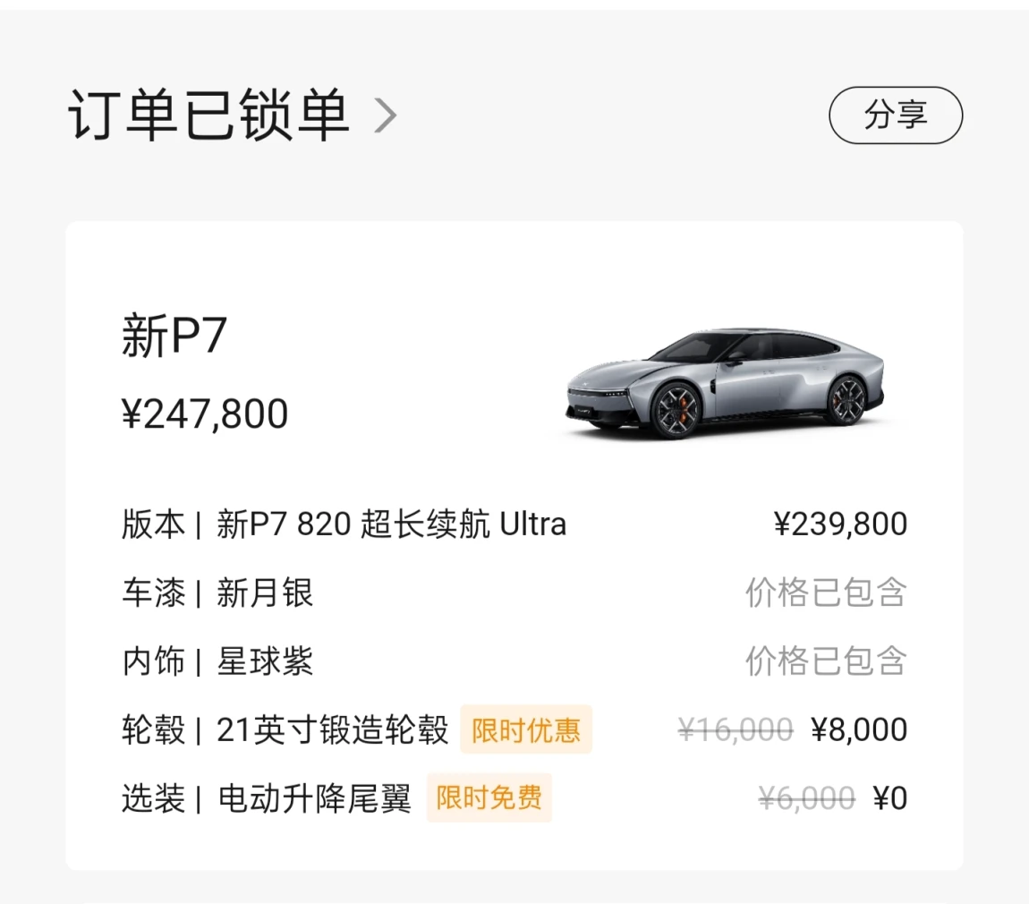 偶遇小鹏新P7真的算一种缘分。那天是工作日,中午吃完饭和朋友在商场里闲逛。偶遇小鹏门店,一辆新P7映入眼帘。外观真的太吸引眼球了。低趴的造型,未来和科技感的设计。这也太好看了吧。内饰简洁,高大上,高级感扑面而来。功能门店销售介绍了一些新P7的配置功能,在新能源市场真的是顶配了,前后不同胎宽,空悬也是标配,三颗图灵芯片的智能驾驶,算力杠杠的。当时毫不犹豫就99元预约了。到后续再付定金,再锁单,一气呵成。直到提车真的是没有一刻犹豫。#小鹏汽车、#小鹏p7、#全新小鹏P7正式上市 、#新一代出片神器