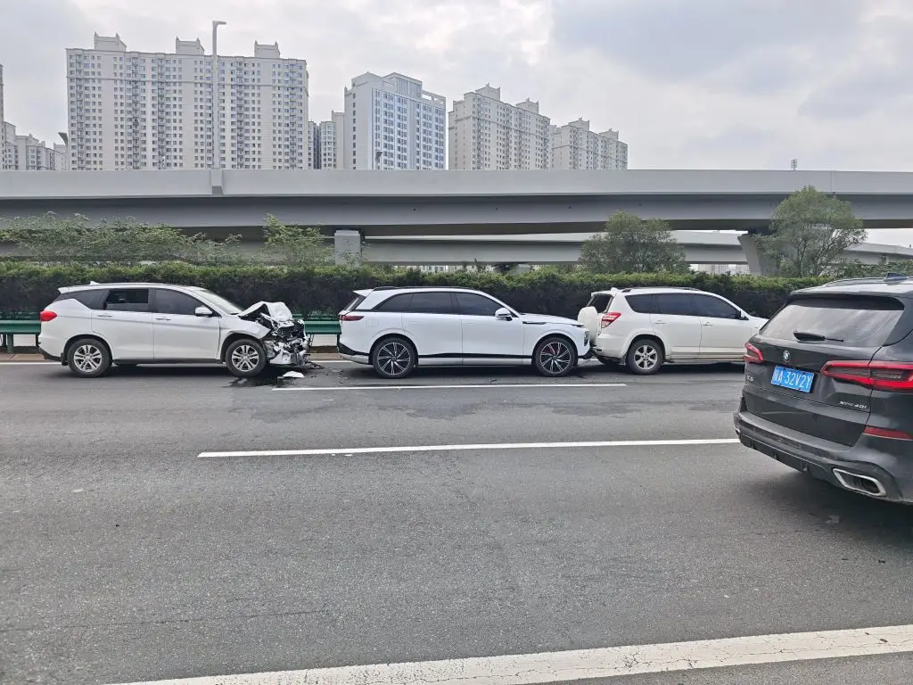 高速三车追尾,还好我的小9够硬,救我小命,后车都报废了