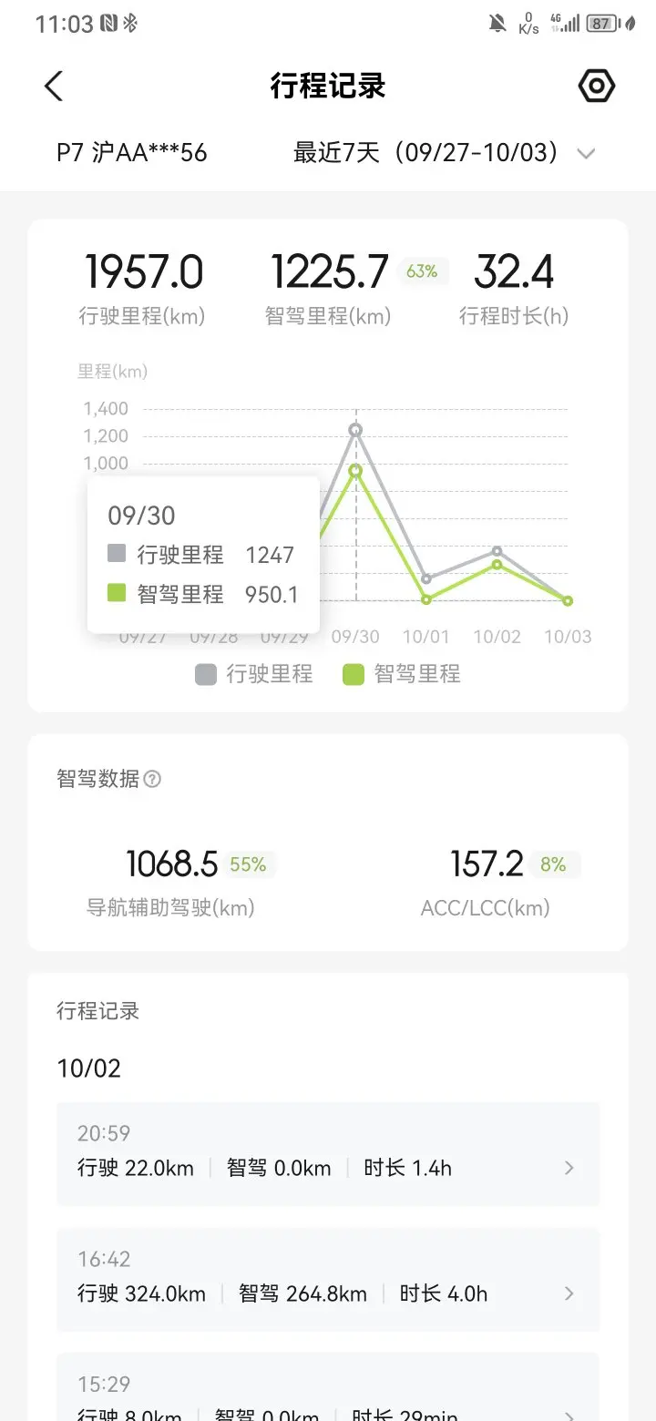 趁着假期提前出发,从上海一路向南的旅途格外顺畅,完全没遇上预想中的拥堵。我的老款小鹏P7虽标称413公里续航,却凭着一路畅通的路况和精准的能耗控制,轻松实现了“日行千里”的小目标,彻底打消了此前对续航的顾虑。