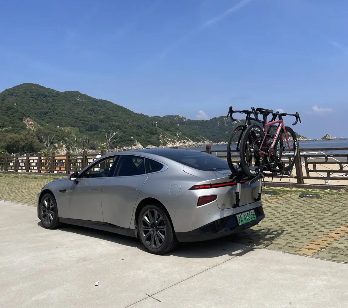 长途驾驶中,NGP辅助驾驶更是成了得力帮手,自动跟车、车道保持、智能规避障碍,大大减轻了长途操控的疲劳感,让赶路的时光也变得轻松。这次出行我们特意“轻装上阵”,车子里塞满了装备:除了载着家人和宠物狗,还稳稳固定了两辆自行车。