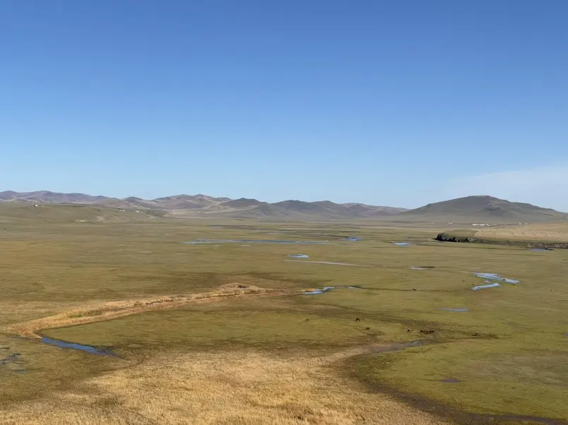 眼前湖泊、沼泽与草地交融,层次分明,仿佛一幅天然画卷。