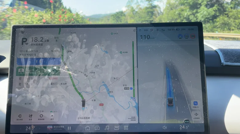 出发前,我用小鹏P7+的车机导航规划路线。不得不说,这个车机导航真的太好用了!它不仅能根据实时路况规划最优路线,还能提前预测拥堵路段,并给出避开拥堵的建议 。上了高速,我开启了小鹏P7+的NGP智能导航辅助驾驶功能。在驾驶过程中,我只需要把手轻轻放在方向盘上,时刻关注路况就行,大大减轻了驾驶的疲劳感。我现在的是更新至最新版本XOS 5.7.8.8906。