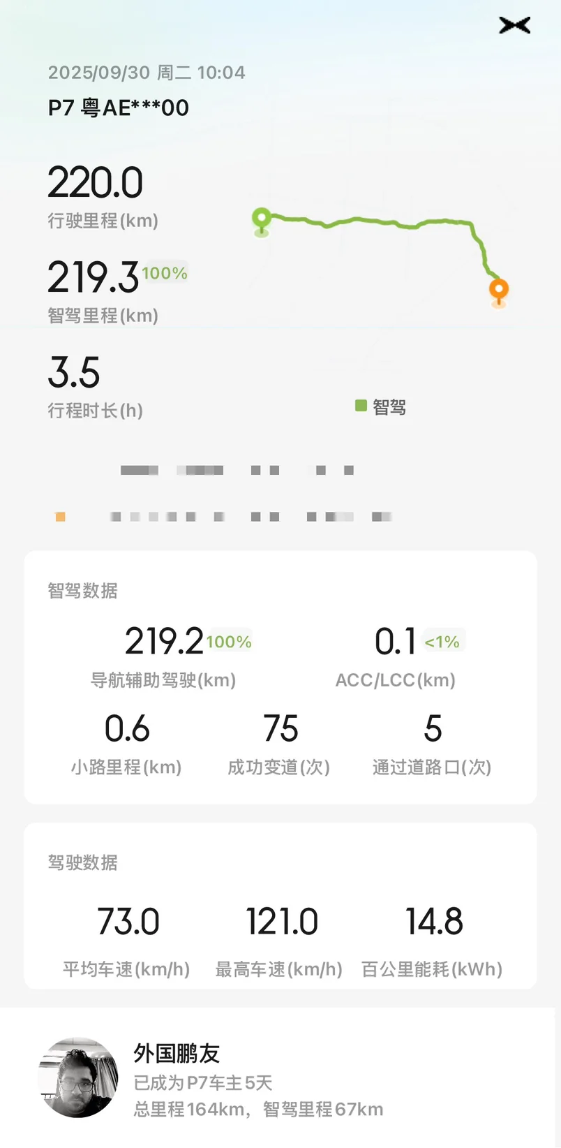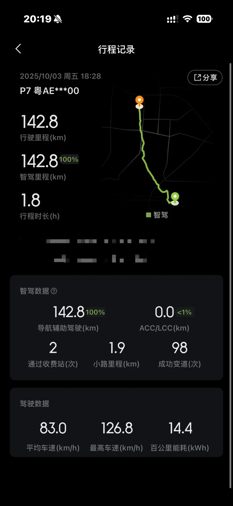 2- 能耗,续航,充电。NGP开的能耗超级低,完全没想到动力这么强的四驱P7跑长途还能轻松跑五六百公里!那天惠州回广州显示到达续航只有23公里,我还在纠结要不要中途充电,结果到了还有97公里续航。。新P7大家可以放心的用CLTC续航再打个9折左右!