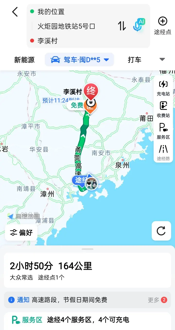 从厦门出发,定位李溪村或者李溪村村委会!路上接上朋友,大概164公里,来回320公里左右的一个路程!避开热门的地方,高速还是很通畅!