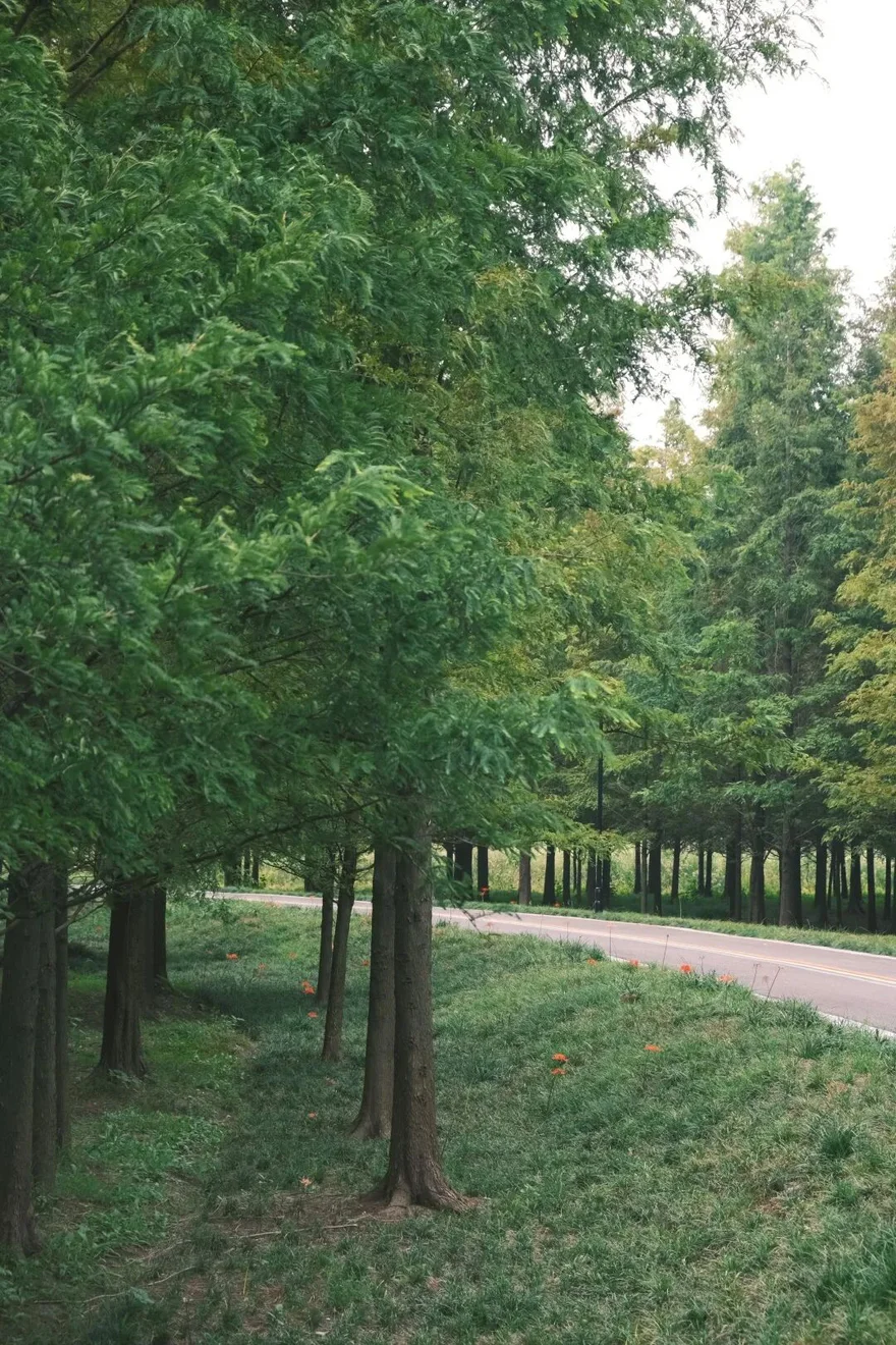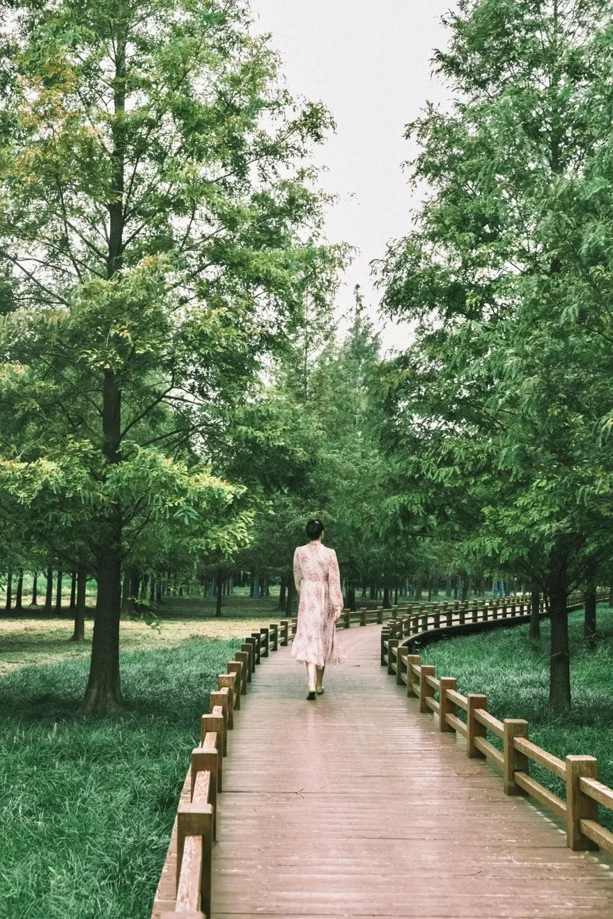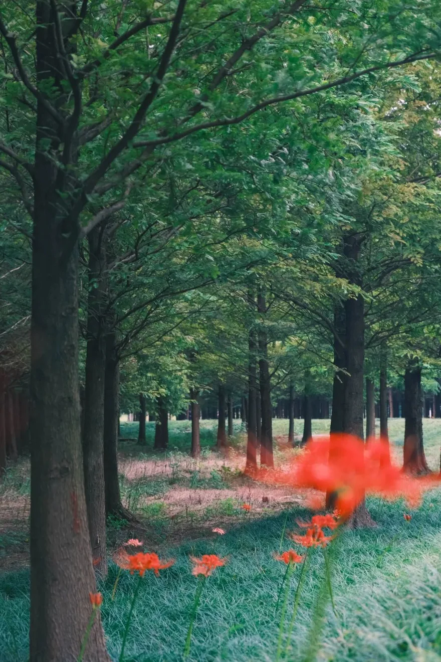 #我的绿色足迹# @鹏友俱乐部 @鹏友爱公益 秋意渐浓,从“一叶知秋”到“层林尽染”,独溇小海的秋日有着寻独属于江南的婉约柔情。闲暇时,带着家人去独溇小海的800亩水杉林走走,感受一下绿色原生态的宁静惬意。方寸天地间,水杉在四季更迭中演绎色彩的变幻,好似大自然打翻了调色盘。蓝天白云的衬托下,“彩虹公路”两侧的水杉林构建出一幅意境绝美的风景画。惊喜的发现了一条蜿蜒绵长的木道,无论是赏景还是拍照别有一番风情。整片的水杉林下红色花海如同点点火光给一片深深浅浅的绿色增添了粲然的风姿。顺着光影的踪迹抬眼望去,细长的树叶镀上了一层碎金,初秋的温情婉转便一展无余。漫步在此静静聆听清脆的鸟啼,轻嗅空气中夹带着泥土和青草的芬芳与大自然来一次亲密无间的接触吧!