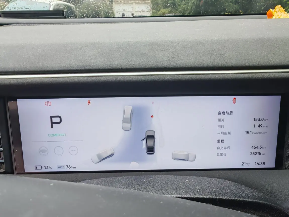 最终到家还剩76km,比去年少了40km。可能有几个原因,一是一路上雨断断续续,路况不好,时不时遇到大车卷起来的水雾不得不减速,速度不稳,二是我怀疑尾翼没自动打开,因为我设置了80码自动打开,而且把锁车关闭尾翼设置关了,但下车从来没看见尾翼在开的状态,建议小鹏把尾翼状态可以显示在屏幕上。