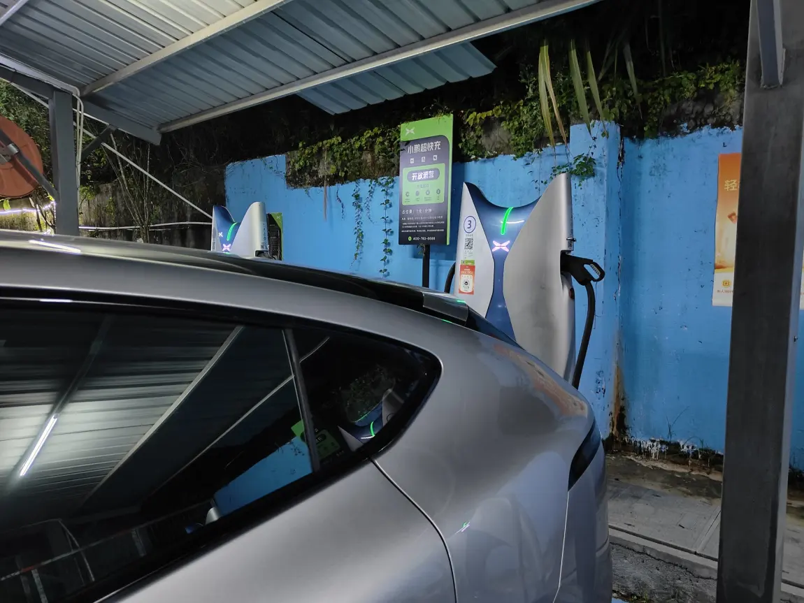 晚餐后,车机显示续航约剩150公里。完全不慌,提前通过小鹏App查好附近小鹏超充站的位置,并查看了实时空闲桩情况。S4超充桩的枪线一如既往的轻便,即插即充,无需任何繁琐操作。