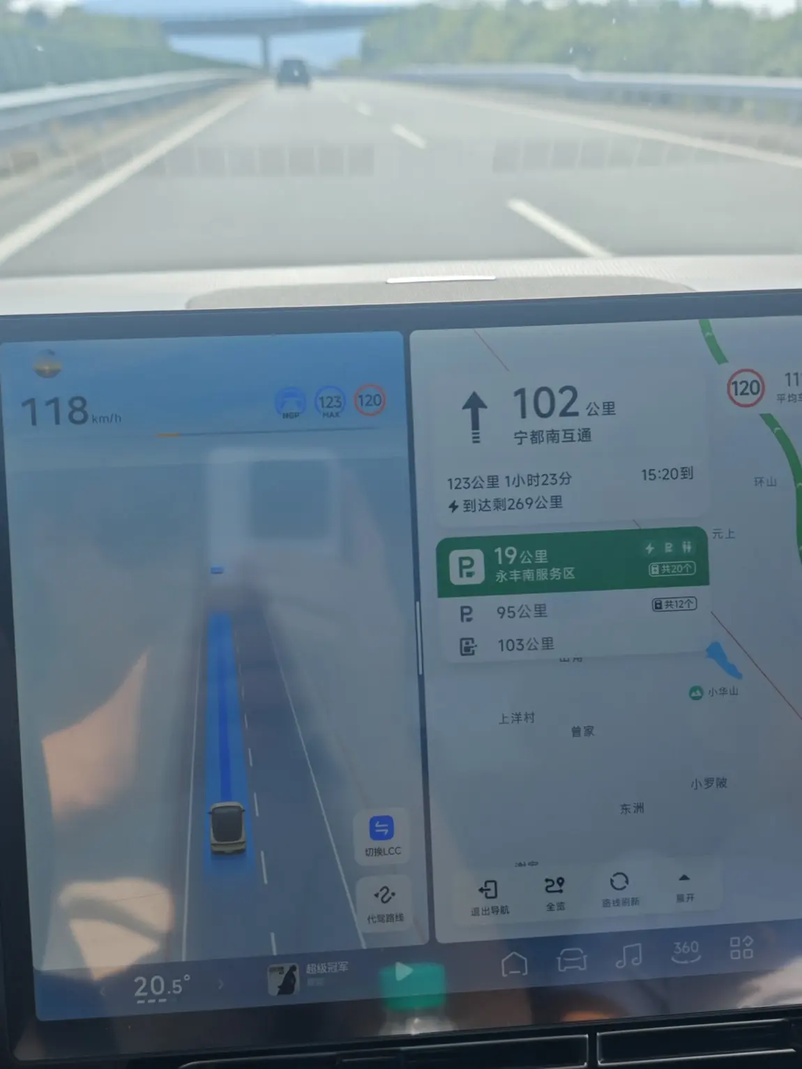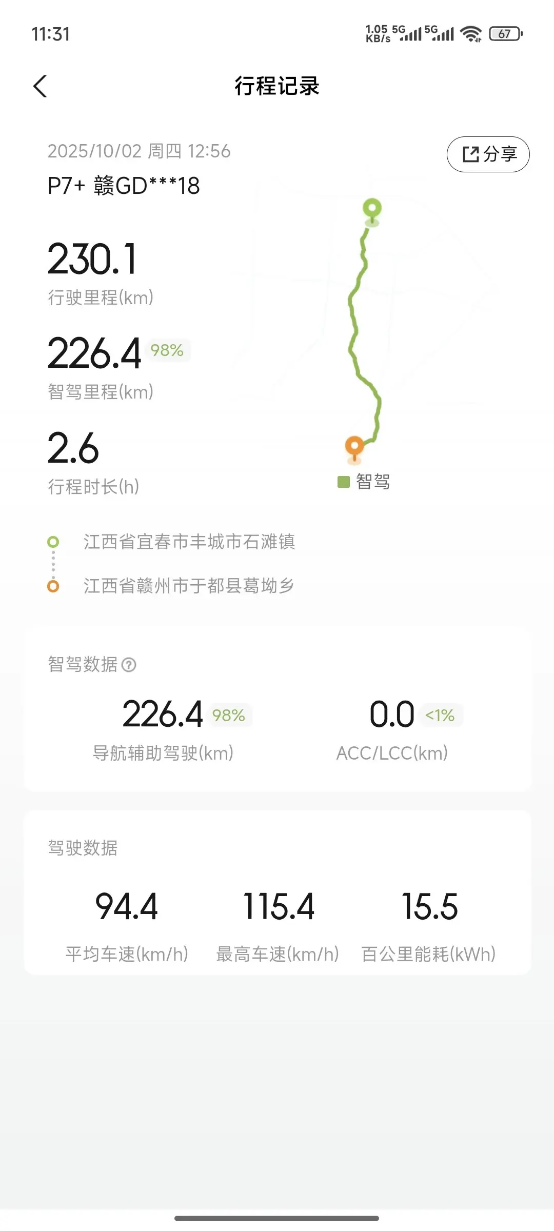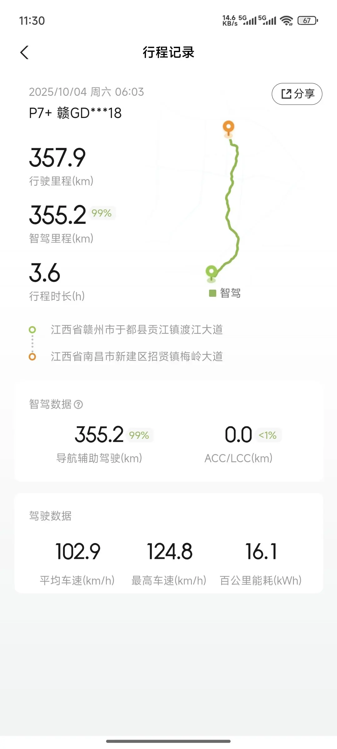 #满电黄金周,山河任我游# #小鹏自驾之旅# @鹏友俱乐部 @充电小助手 祝大家国庆中秋双节快乐呀~虽然天气依旧炎热但是还是挡不住我们出去游玩的好心情相信大家也是一样,本次是从九江出发,目的地到红军长征起点千年古县于都县,基本全程都是智能驾驶NGP(ps:高速人机共驾最高速度可以135)真是太香啦,超车变道非常丝滑,大大省了驾驶员的力气,即使再远的路程也能轻松到达,但是还是提醒大家虽有智驾但还是不能放松警惕,随时看着路况,有紧急情况可以及时处理,假期出行安全第一!高速上充电也非常方便虽然人多但是都是快充稍微等几分钟就可以充上电了,建议大家人多时充到百分之八十就可以啦,80以后充电比较慢,也可以节约时间,节日已过半最后祝大家有一个愉快平安的假期~