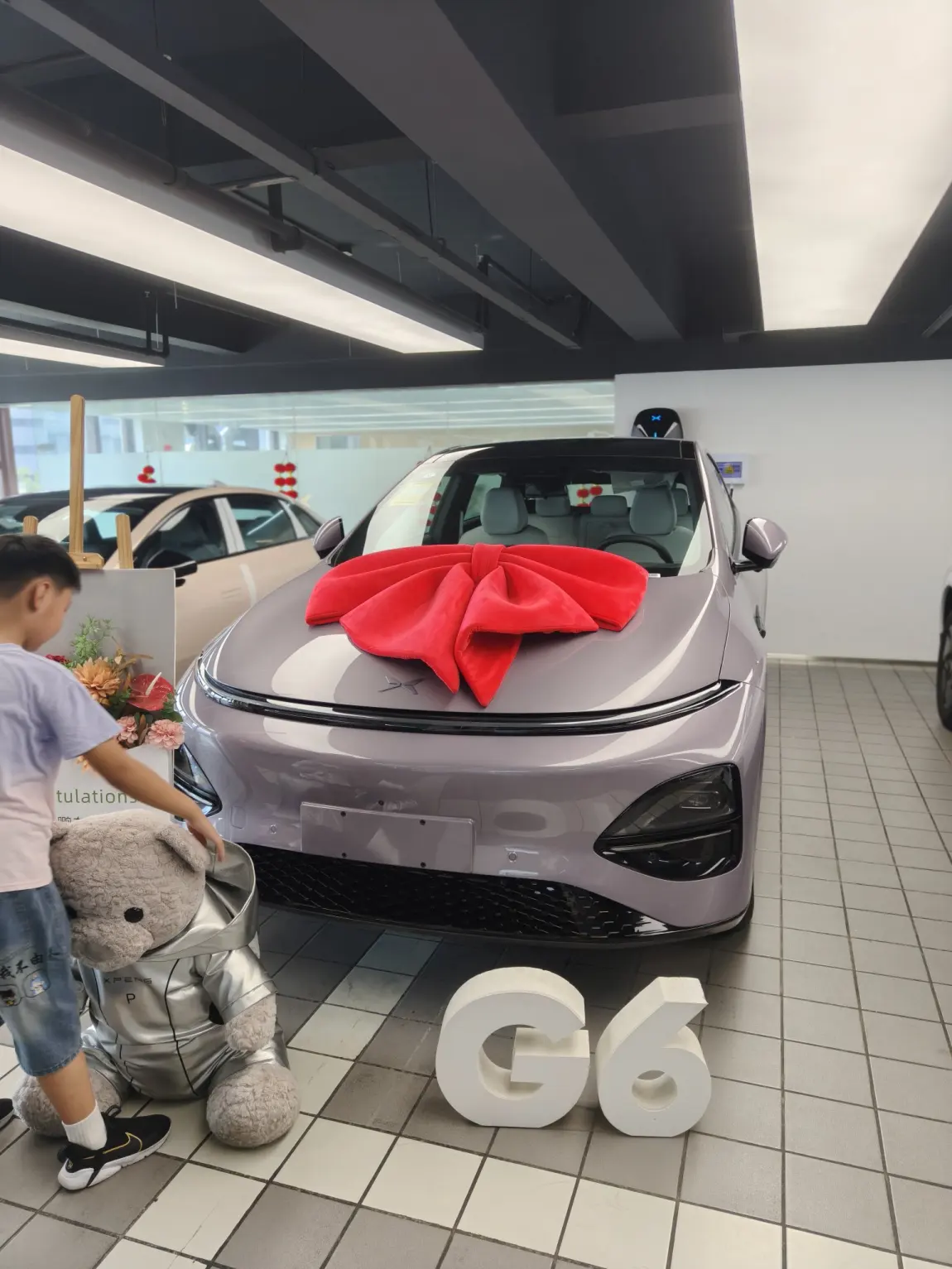 来交作业啦,怀着激动心情,把我的小鹏友按时接回家了。G6在同价位的车里面最发动我的就是它的颜值,一眼就相中了,感觉就是长在了我的心上。