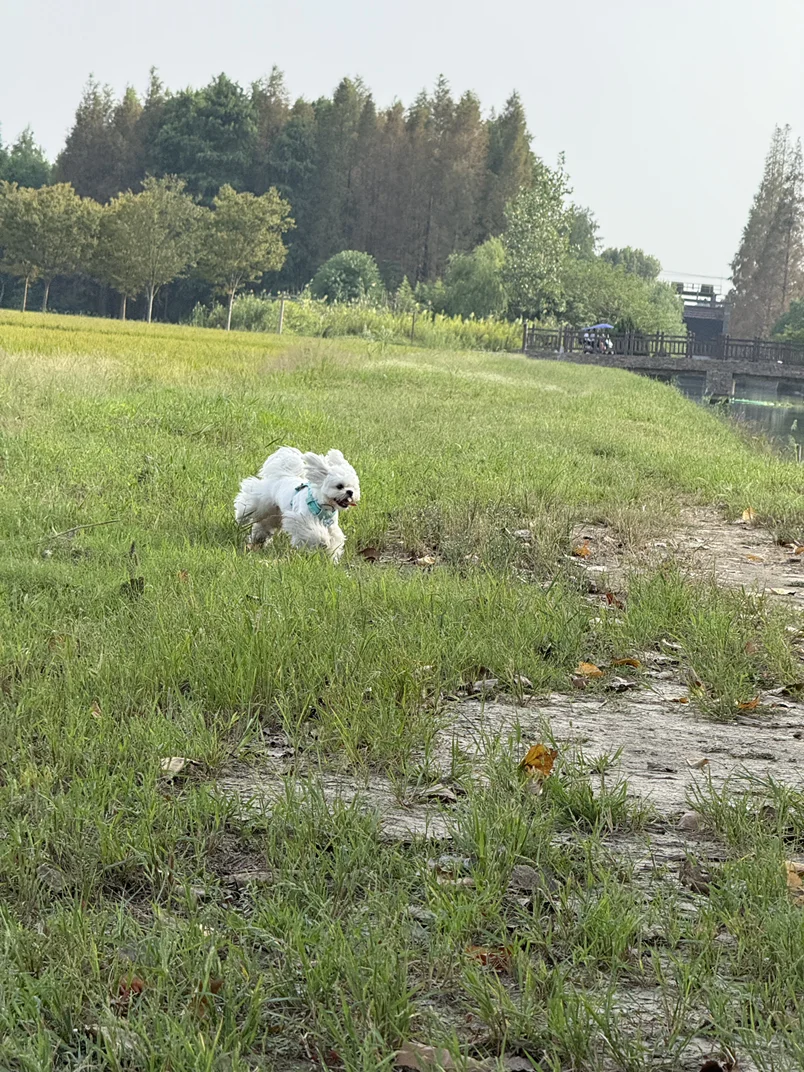 这是修勾勾的第一个秋天,稻田、河流、泥土路,都让他充满了好奇,一下车就疯狂跑酷起来~而且公园足够大,人群密度非常小,基本都可以松绳让他放肆撒欢~😜😜一天疯玩下来,“喇叭腿”都“起球”了😩修狗狗和我,都很喜欢绿色大自然,喜欢没有天花板的地方🤓🤓