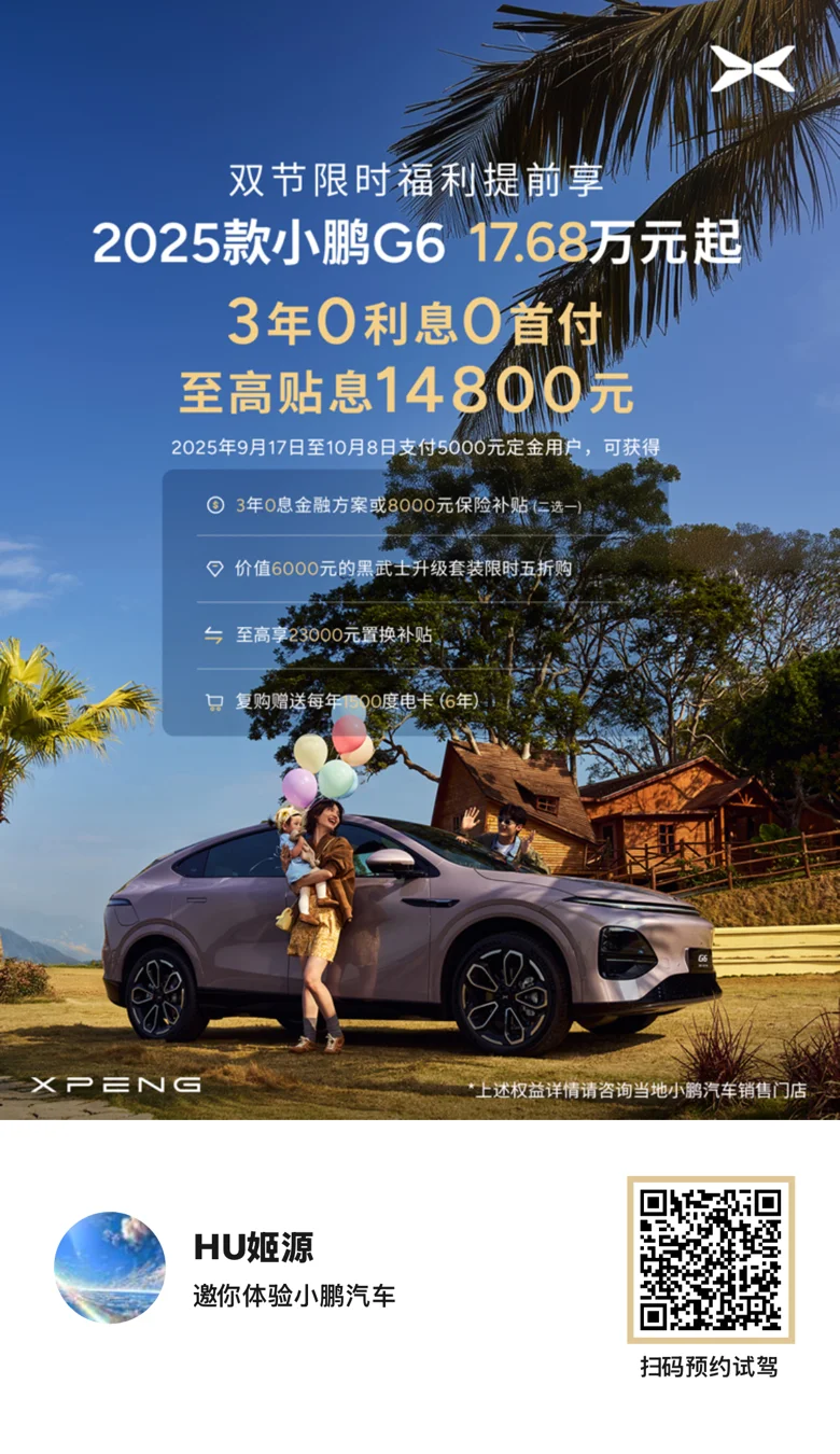 赶在省补结束前成功“上岸”,9月26日成为尊贵的G6车主。一个月狂飙1000公里,智驾独占700km,真·用了就回不去!