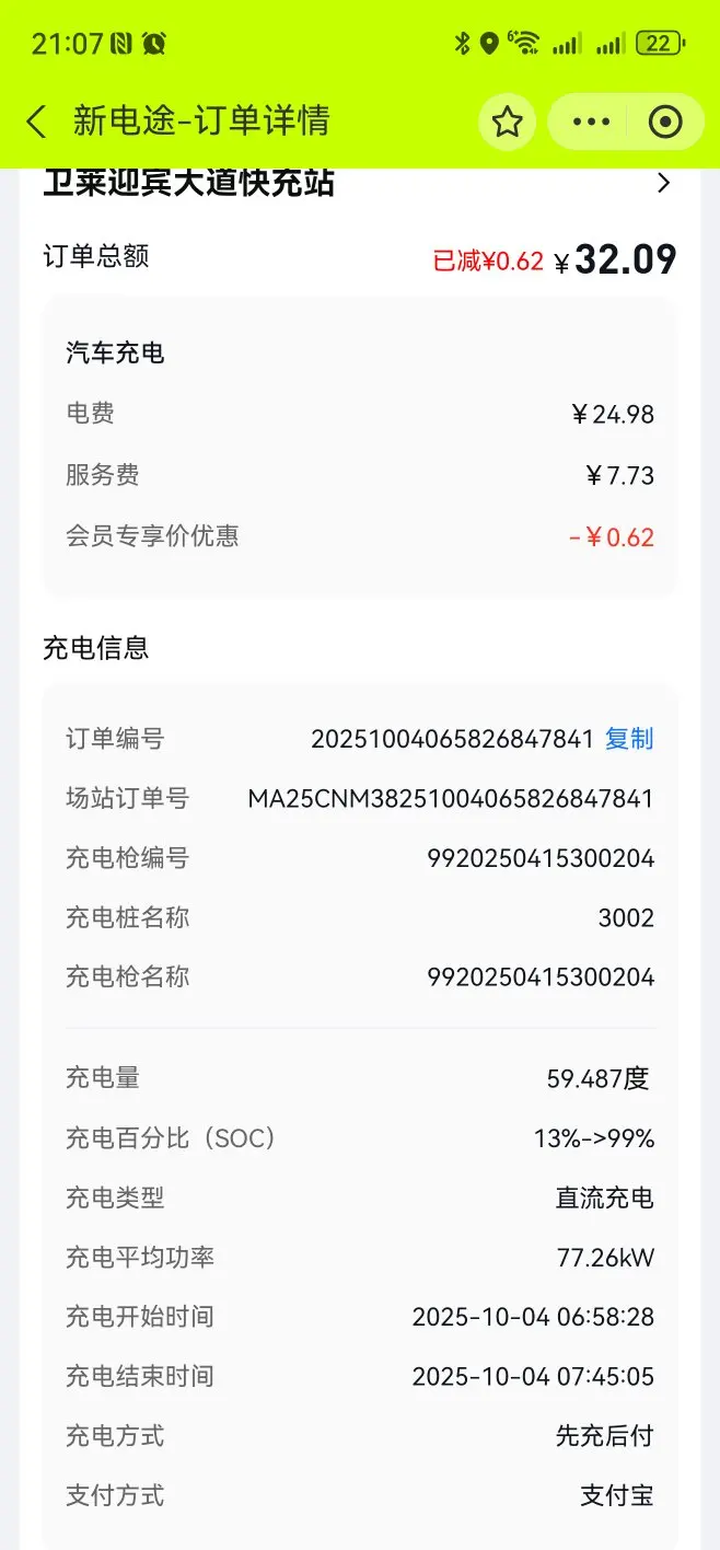 4号早上7点早起去抢0.53毛一度电的快充,29块钱充满,相当满意。