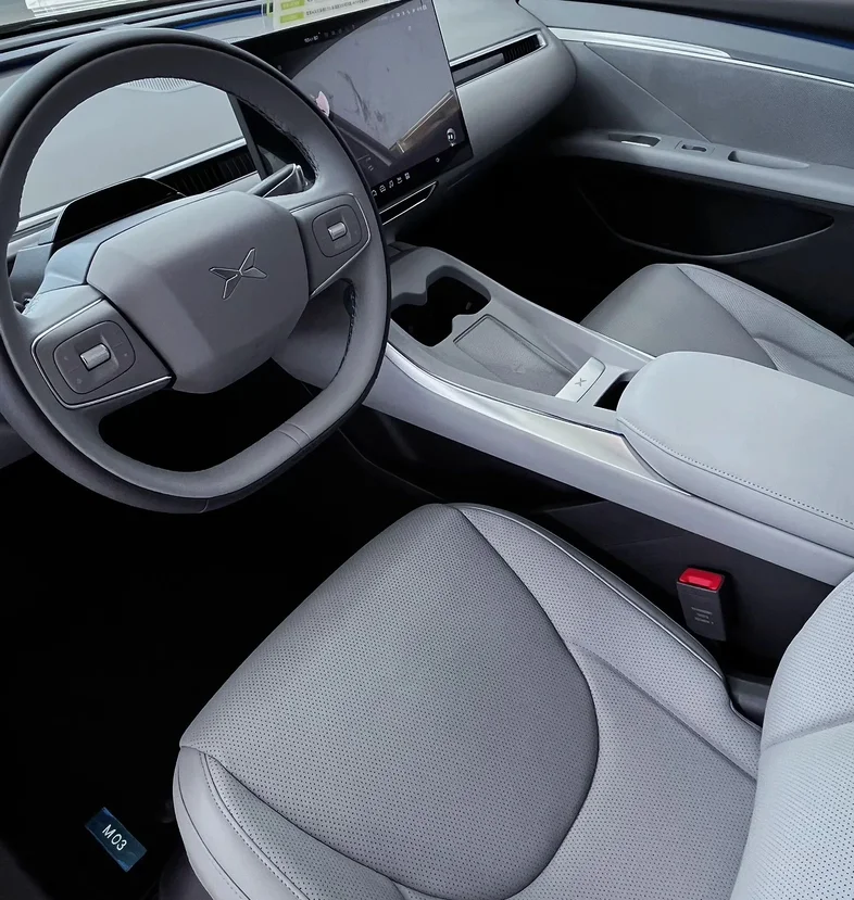 #我的提车作业# 从在门店第一次见到小鹏M03的实车,到今天把它开回家满一周,原本纠结过同价位的其他车型,但真正上手后才发现,M03的“懂用户”,藏在很多细节里。当然,也说两点真实感受,供大家参考。一是快充速度,虽然官方说半小时能充到80%,但实际在第三方快充桩上,大概要40分钟左右才能到80%,不过日常补能也够用,着急赶路的话,提前规划好充电站点就行。二是内饰材质,中控部分用了软包,但门板下方是硬塑料,摸起来质感一般,好在我自己买了同色系的门板垫,铺上去后也不影响美观,算是小成本解决了这个小遗憾。
