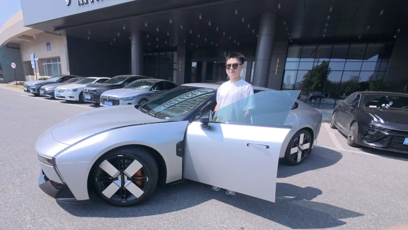银灰车身如液态金属般高级,流线型轿跑设计 搭配极具辨识度的“X型”轮毂,无论停在都市霓虹下,还是穿梭于山林间,都自带“高光滤镜”。夜晚驻车时,车身线条在路灯下勾勒出凌厉轮廓,活脱脱一件“可移动的工业艺术品”,引得路人频频侧目——这回头率,国庆出行的“排面”直接拉满!