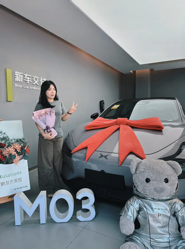 #我的提车作业# 提车快乐呀🎉看车到提车历时1周 速度杠杠的第一眼看到实车直接一眼万年 直接下定金销售小哥哥和交付大哥还有其他的工作人员服务都很好~ 感谢家人和男友的支持~希望以后可以和小p走很远的路,看看不完的风景~希望小鹏越做越好~