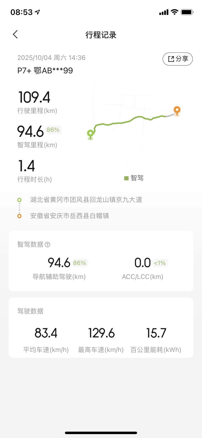 这个国庆,开着我的小P从武汉出发,直奔安徽潜山天柱山!出发前电量显示480km,心里还小小忐忑了一下——结果一路跑完255公里,竟然还剩200km续航!能耗低至15度/百公里,这续航实力也太顶了吧!👏