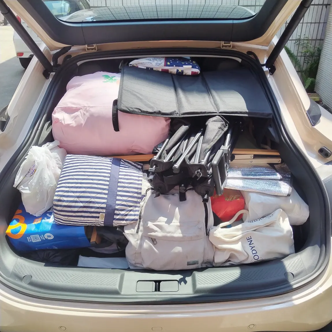 搬家式露营,装了4个人的东西和露营装备,M03的后备箱空间确实够大