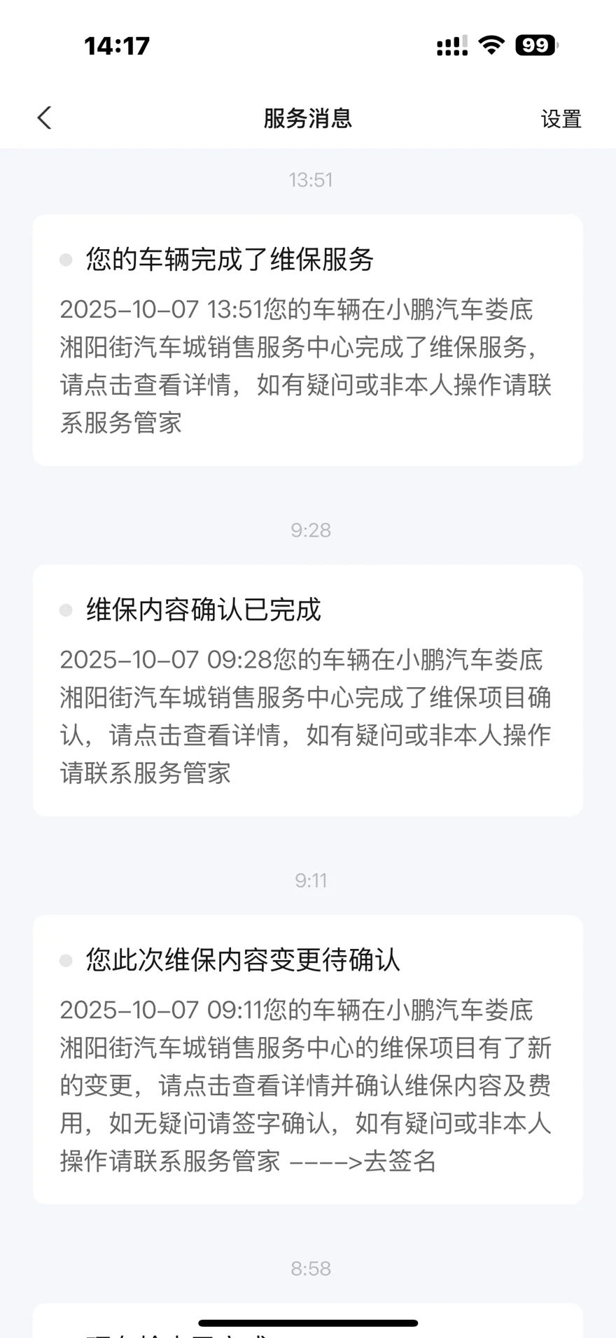 车辆保养上午就离店了,这时候又发信息说完成了维护保养,什么操作?