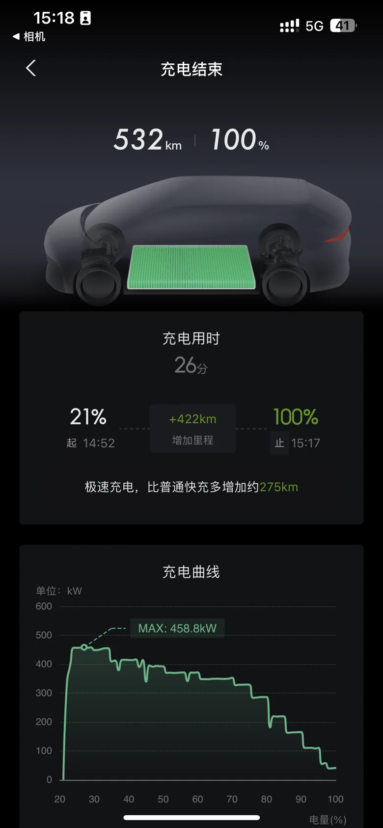江浙沪充电桩很多,国网200kw,300kw的桩,基本都能跑195和300kw;蔚来的200kw跑190KW;理想5C桩跑300KW。小鹏自己的S5,跑450KW。还有广汽,吴越华为,都能跑标称功率的95%。