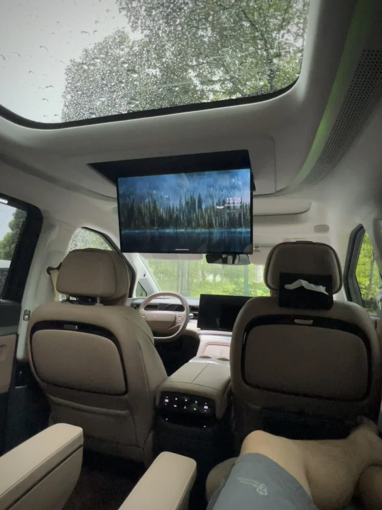 乘坐体验上,我偶尔中午午休,或者出差在二排小憩,小桌板,冰箱彩电,按摩通风加热,遮阳帘应有尽有。