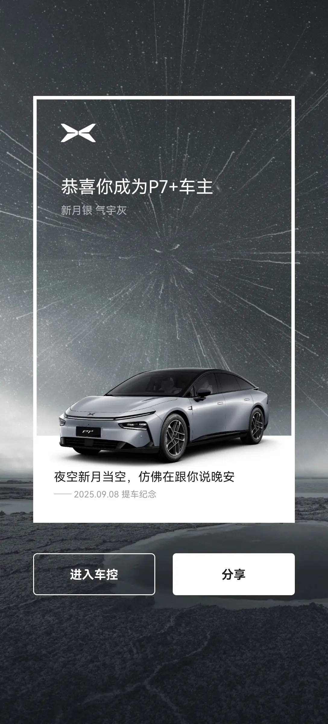 作为一个汽车行业的从事者,进行了多方面的考虑(品牌,颜值,性能,三电,智驾等方面),最终选择了小鹏的P7+,于8月底和销售顾问联系了试驾,试驾的体验还不错,切身体会了车子的操控及智驾,也近距离的看到了他的外观、内饰、空间,结束后就决定是他了(选择的银外白内,家里人让选黑内,但白内真的很好看,我自认为是比较爱干净的,所以不太怕会脏,但是毕竟是白色后期可能会发黄,但也没事,到时可以垫个座椅垫),交完钱后很快车子就发运过来了,也是迅速安排了提车,因为我是比较i的一个人,所以让交付人员办完手续和车辆的一些设置就直接开回去了,目前提车近一个月了,行驶了近1000km,其中有600公里是智驾,智驾的体验真的很不错,目前没有出过如何错,且近期还进行了一次OTA的升级,升级后的智驾估计更加是稳了(智驾虽好,但毕竟是辅助功能,所以鹏友们还是要注意着一点),车子的座舱也是智能化十足,家里的油车完全没法比,前排的大屏里内容十分多慢慢摸索了很久,后排还带一个小桌板和一个娱乐屏有时中午在车上吃个饭,看看电视也是非常的爽,还有一个就是我必须要说的,那就是空间,首先就是乘客空间,家里人坐在后排说要往前够着和前面人交流,还有后备箱真的是巨,我的一些东西光是后备箱下面的格子就能放下了,其他可以放东西的地方也很多,能够满足我的小松鼠的囤货属性,目前就是这些体验,总体来说还是相当不错的,没有然后让我后悔买这个车,非要说后悔那就是后没有早点买,真的应了那句话,早买早享受,ps:提车送的小熊是盲盒的形式,很有新意,紧跟潮流#我的提车作业#