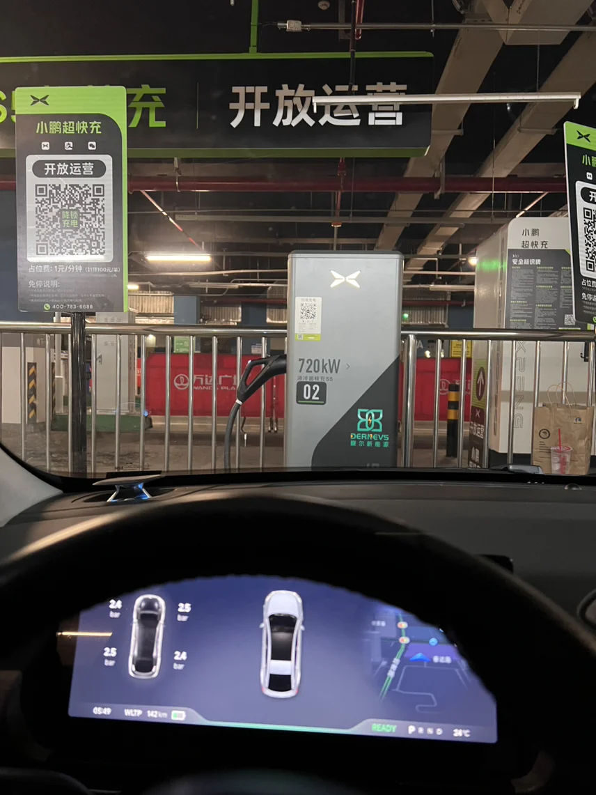 #满电黄金周,山河任我游# @鹏友俱乐部 @充电小助手 国庆出发江苏六天游,第一次在无锡高新万达广场体验到了超级快充,再这么繁华的地方建一个宽敞的专属充电站,小鹏真是太有魄力了!充电桩:功率提升到720kw 充电线反而变细了,很高级,充电很轻便,之前会需要两只手掰线,现在S5一手掌握!720kw充电速度真的超级快,在等待充电的同时,还能去商场里面喝杯咖啡吃个早饭。