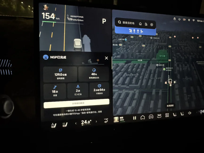 #我的提车作业# 小六提车不满1个月 给大家分享一下,假期第一次体验高速ngp非常惊艳!潍坊到临沂,刚开始不相信感觉很危险,主要是快到凌晨了天天小雨,还有雾,我寻思体验下ngp吧,没想到 这么稳,真是科技改变生活,加油小鹏,希望小鹏大卖!