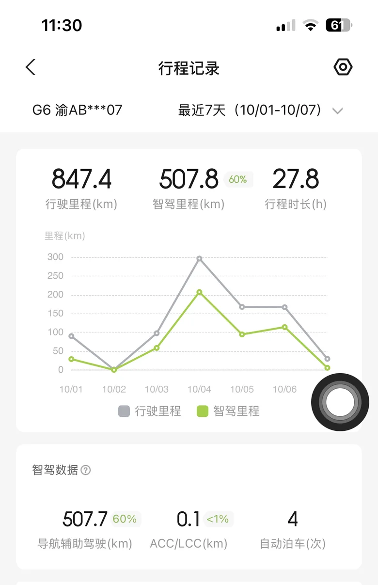 #满电黄金周,山河任我游# 国庆期间充电两次,一次去重庆永川和荣昌,去了荣昌夏布小镇,然后去涪陵武陵山森林公园,山路毫无压力,路程来回都在300公里左右,所以充一次电来回跑都没问题,g6这款我开里程大概在520公里,山路上坡比较耗电,下坡就非常省电。高速路上大部分用智驾,所以国庆期间智驾占比很高,包括晚上从荣昌经过永川再回重庆超过90几公里智驾,很方便 @鹏友俱乐部 @充电小助手 @充电小助手 @充电小助手 @鹏友俱乐部 @充电小助手 @充电小助手