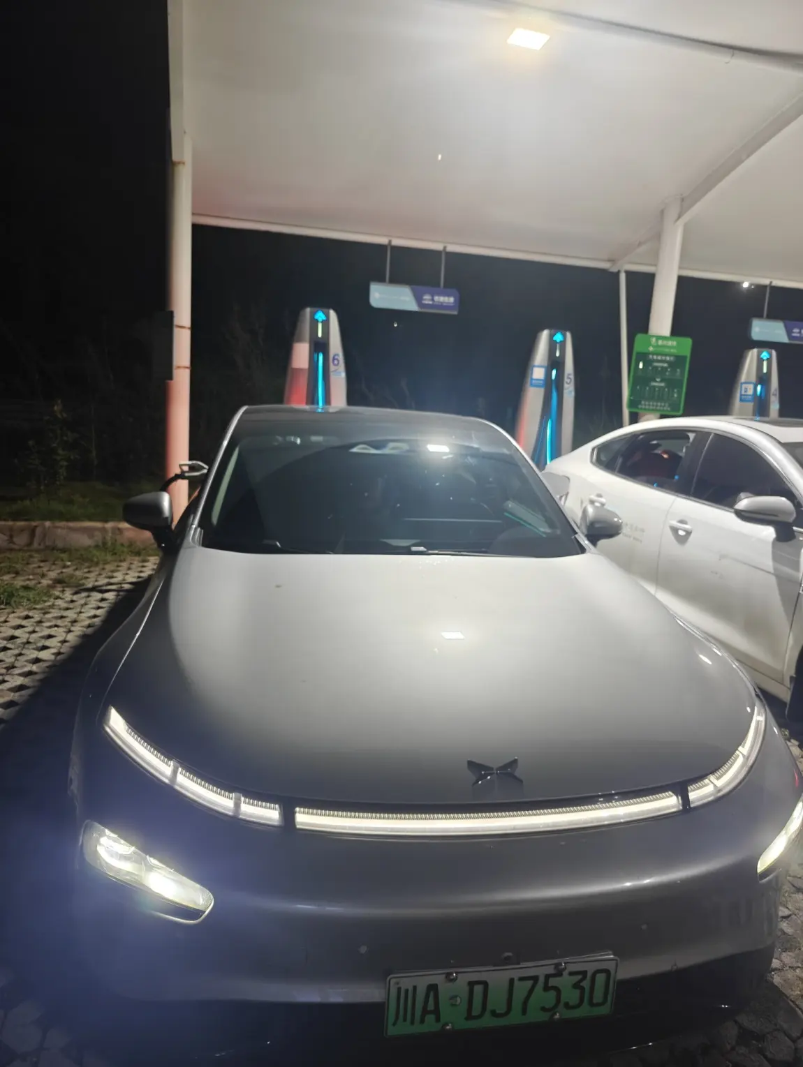 晚上,去荣昌的路上荣昌陶服务区充电,充电体验3颗星。电费:1.6元/度,充电20分钟,共花费 43.71元。提示:当时,我很奇怪怎么国家电网的那边杂草丛生没人充?还是人从众,还是选择了人生比较旺的广汽能源这边充电。其实小鹏发了国庆充电福利,在国家电网那边充,享受66度免费电的额度。没有用上福利有点小遗憾!为了早点赶到酒店,我们只充了20分钟,后面又在酒店旁的充电站补充了30分钟,不过电费就只有8毛一度了,仅花费33.8元,充满电。唯一缺点,入口标志不明显,找了半天。