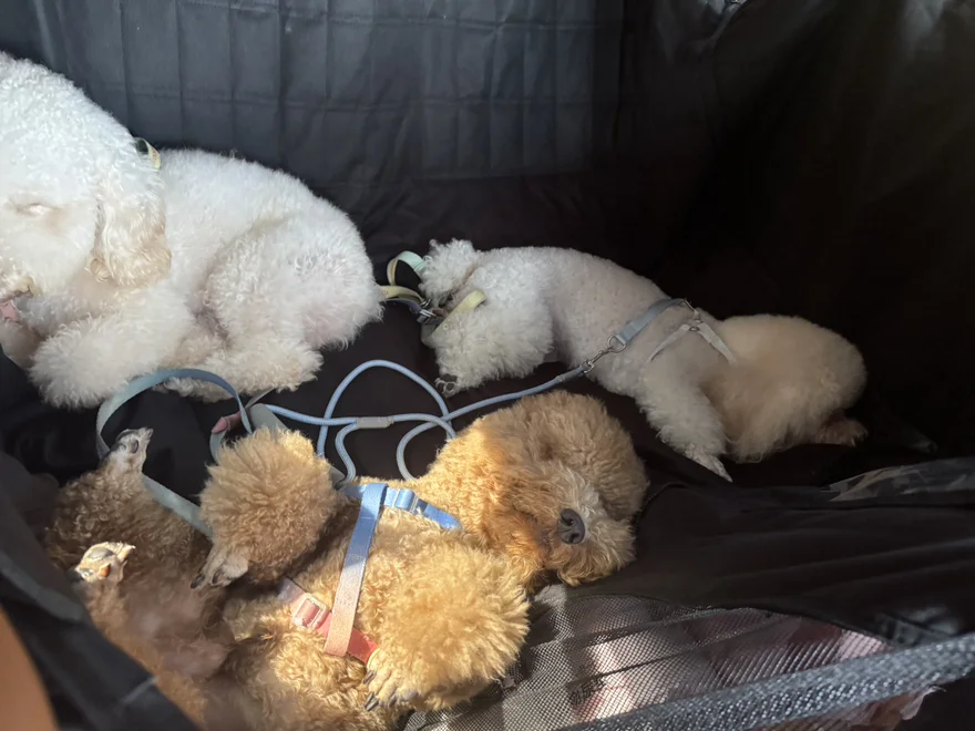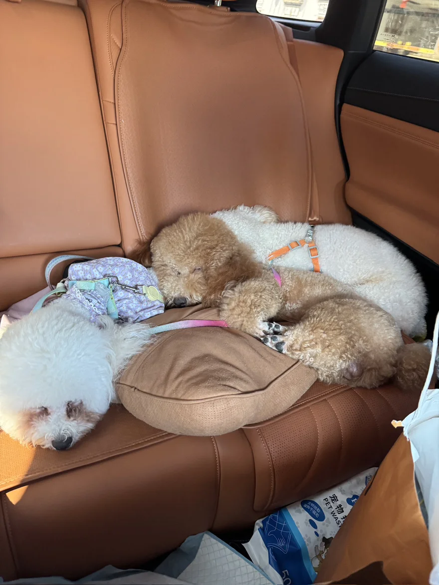 国庆期间江西超级热!体感40度。这时候,小鹏的宠物模式派上大用场了。我们去场馆,小狗们在车里睡觉。这是我们敢带三只小狗跑一千多公里的原因。
