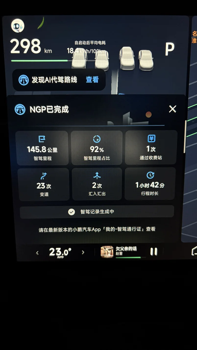 升级后,小p的共驾模式比原来的NGP开起来更加随心所欲了,偶尔干预下也不会被打断,这是最长的一次智驾体验了,很轻松