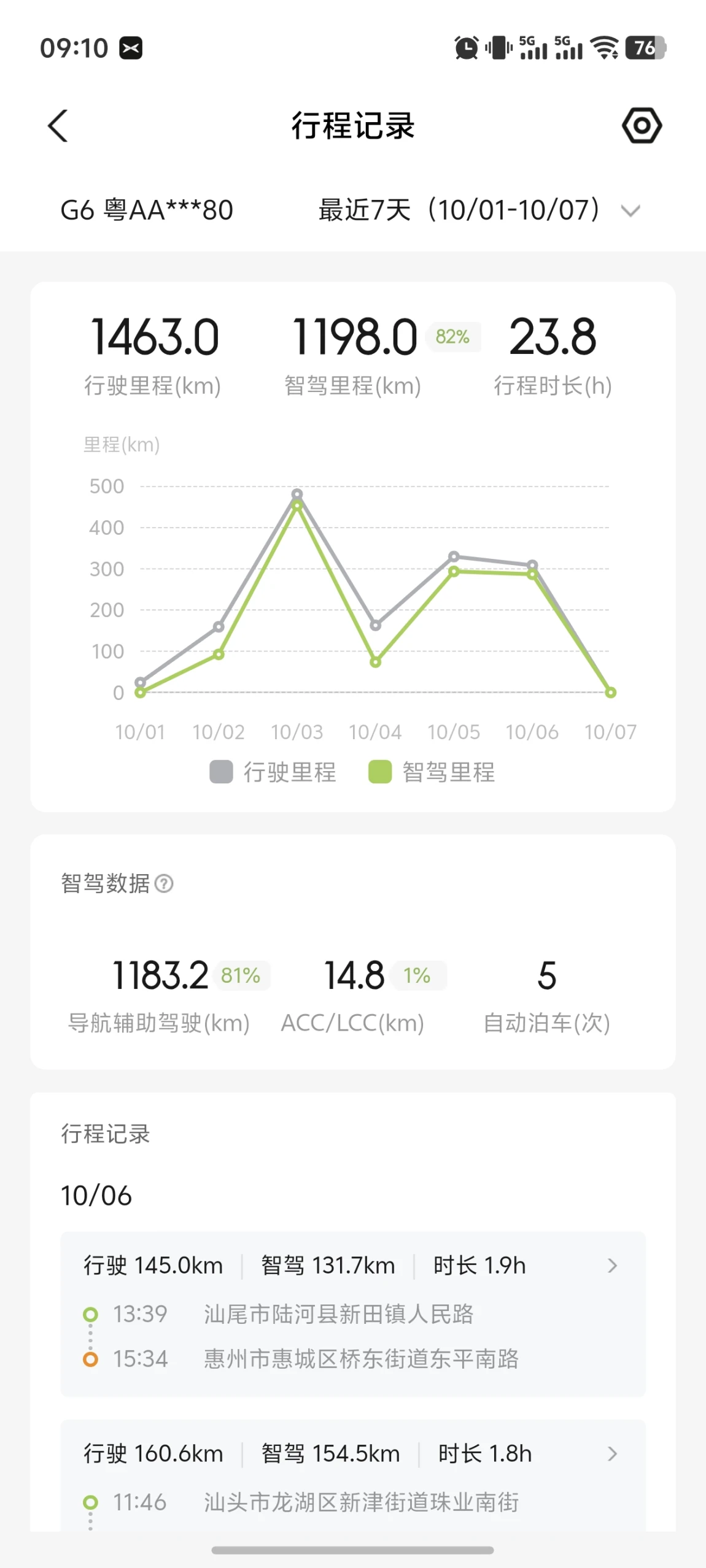 本次自驾游往返全程1463km,智驾里程1198km,智驾占比达82%。智驾好不好用,数据说明一切!特别是节假日出行,高速车多缓行的时候,智驾更是能释放右脚,大大减轻驾驶疲惫感。