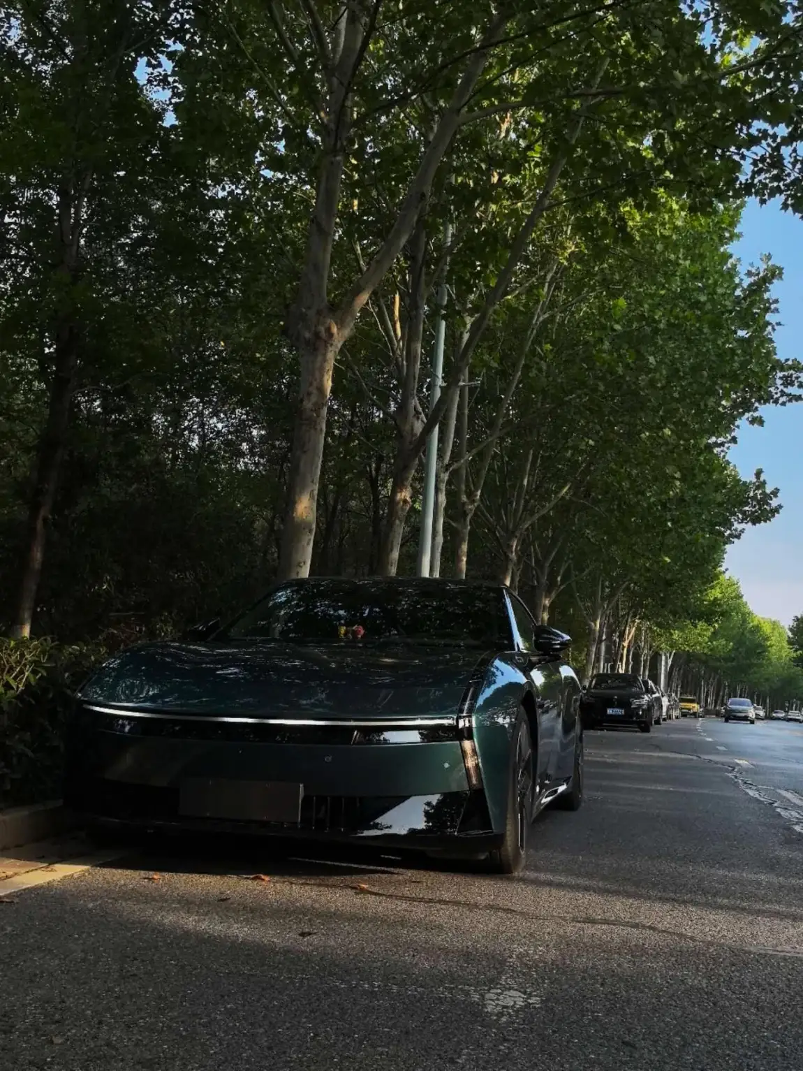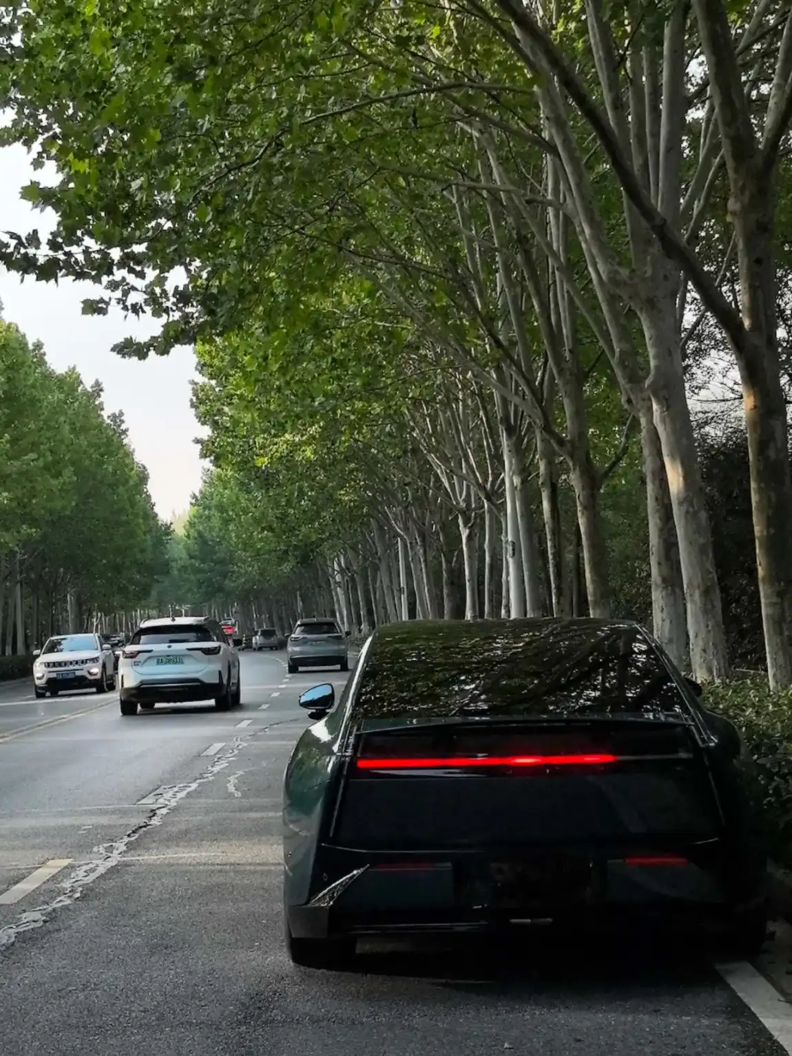 #我的绿色足迹# 今天给我的小屁洗完车车(还是到4s店免费洗的车。,就开到了合肥的大蜀山旁边。这个在枫林路上,车漆映着光,映着树的影子。呼吸着绿色的空气开着绿色的P7。 简直太幸福了。@鹏友俱乐部 @鹏友爱公益