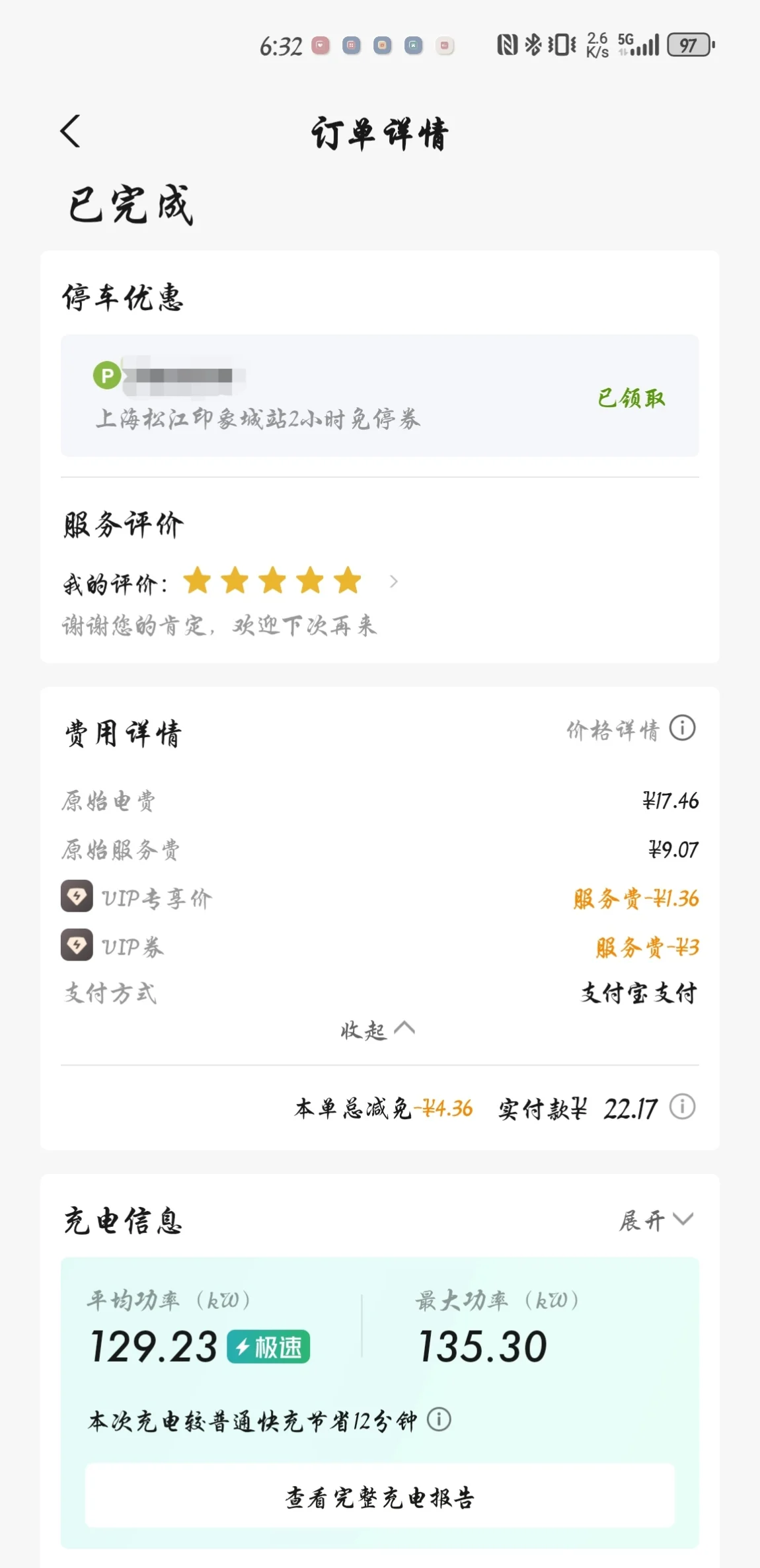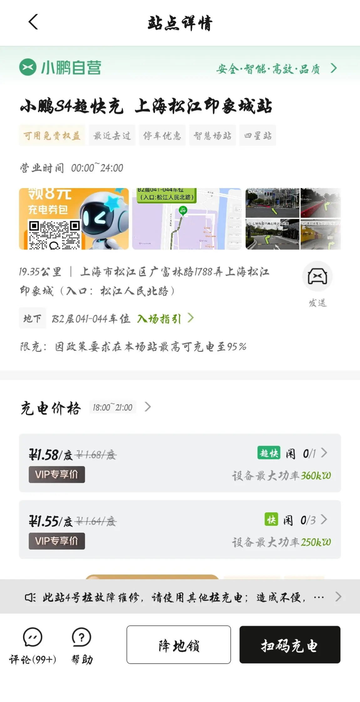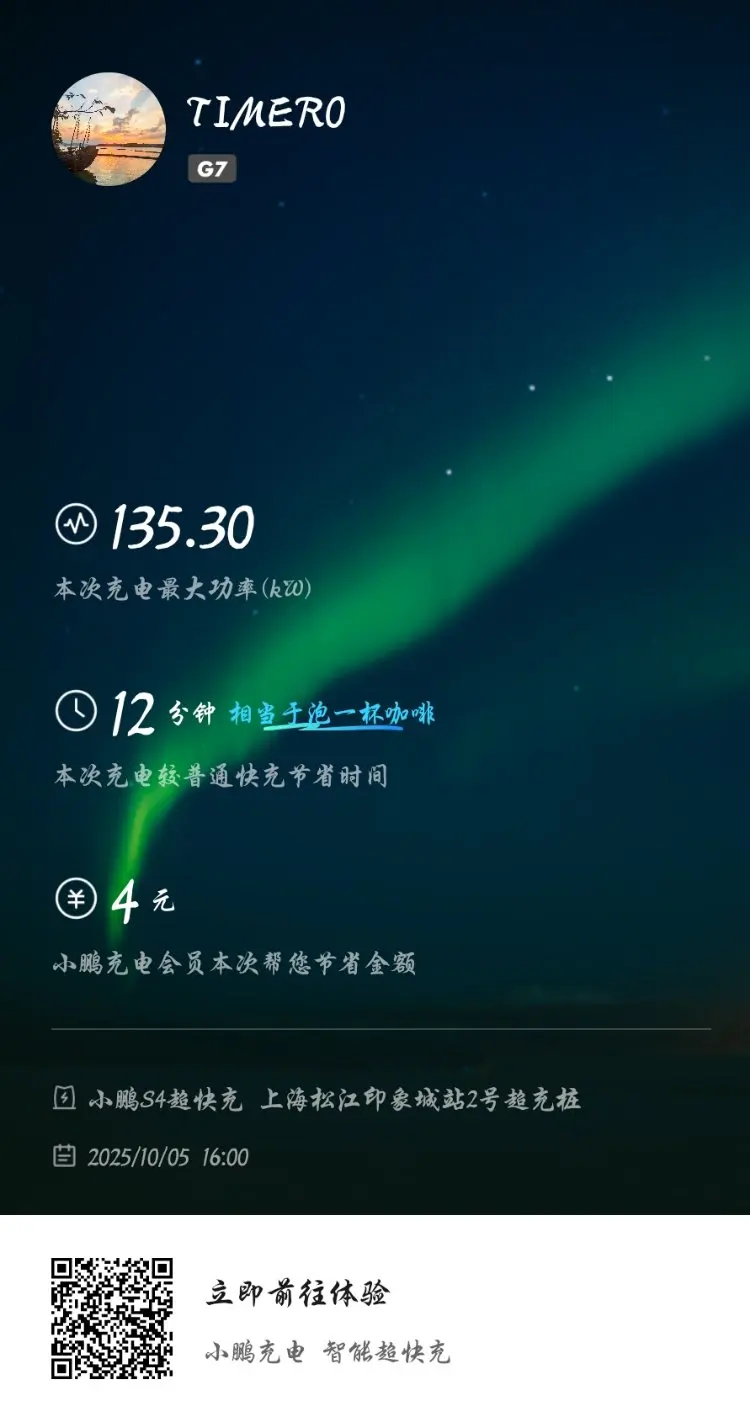 加入小鹏两个月了,之前都还没有用过小鹏的充电服务。在这个国庆中,和家人一起去松江万象城玩,正好车子没电了,搜了一下万象城地下也有小鹏的充电桩,就试了一下。整个充电的过程十分顺畅,app上可以查看还有哪几个桩是可用的,一键降地锁,一键充电,实时查看充电进度。充电速度非常的快,十来分钟就从40%充到了70%,再充久点的话买一杯奶茶的功夫完全可以充满。价格也很惊喜,算上优惠券超快充只有9毛钱左右一度电,而且还能免两个小时的停车费,也算赚了14块钱了。真的是好用又实惠!