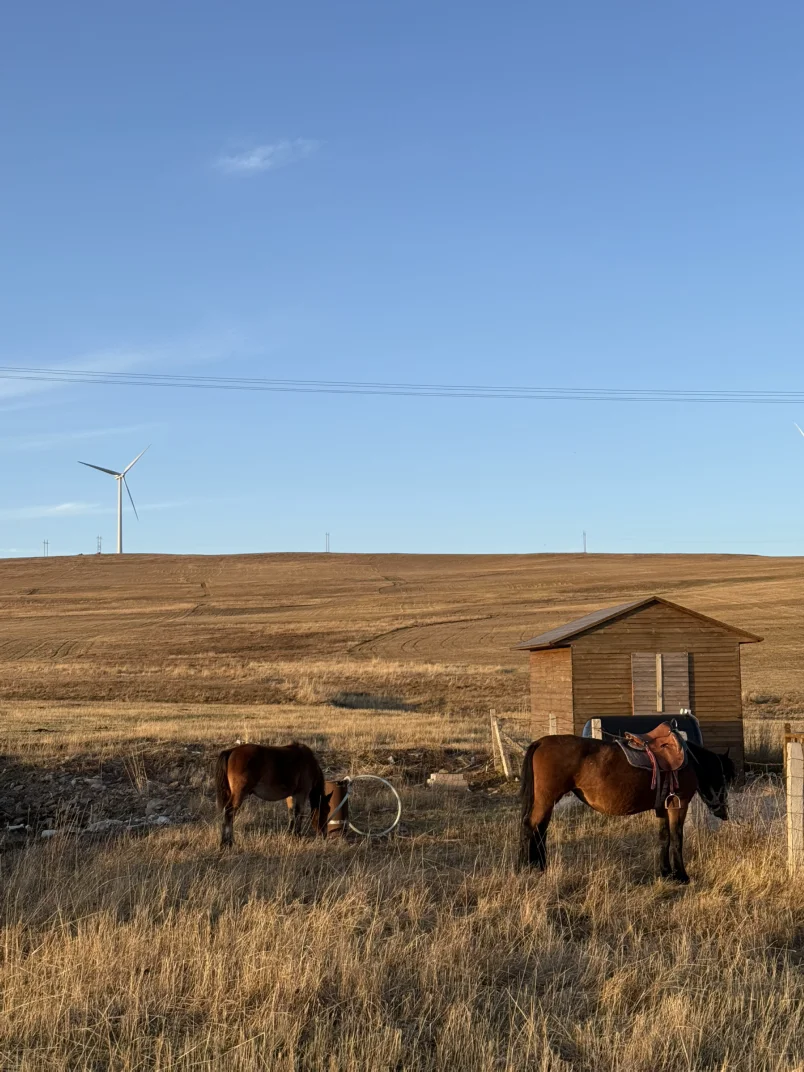 第6天:早上开始下雨,取消了上午的行程。午餐:在振雄餐厅吃的葱爆羊肉,然后出发前往乌兰布统,欣赏沿途风景,晚上住宿乌兰布统度假村,吃了羊肉串,味道一般,晚上天气比较冷,老板说9.26之后没有篝火晚会,开始降温,人也较少。