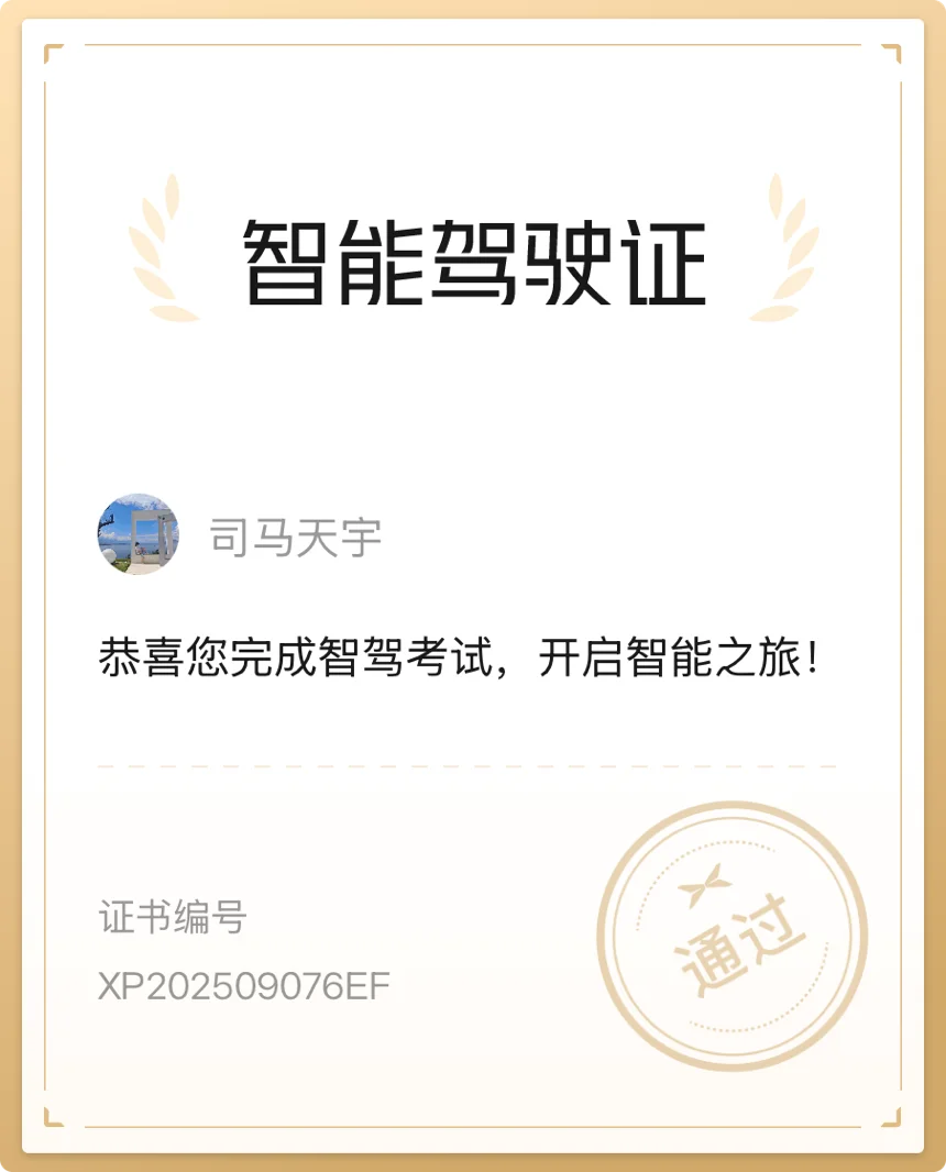 提车前一天没忍住,智驾考试完成,获得了我的第二张“驾照”。