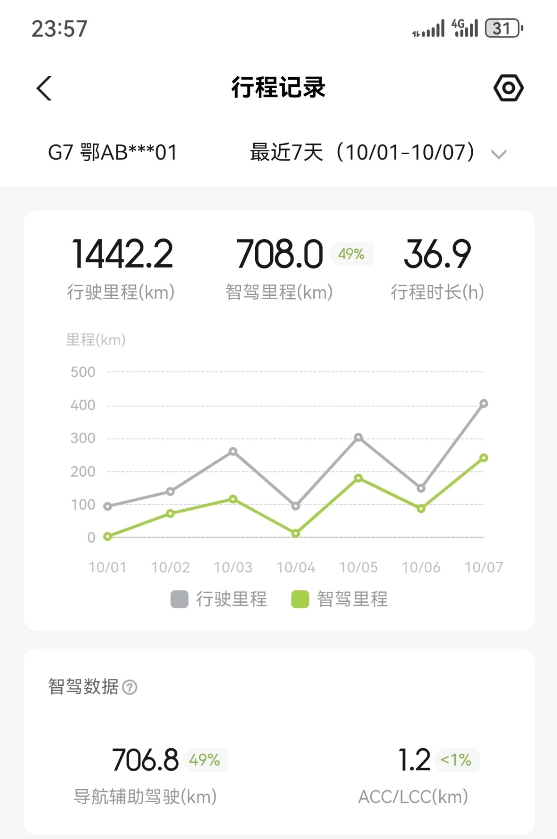 国庆七天1442.2公里