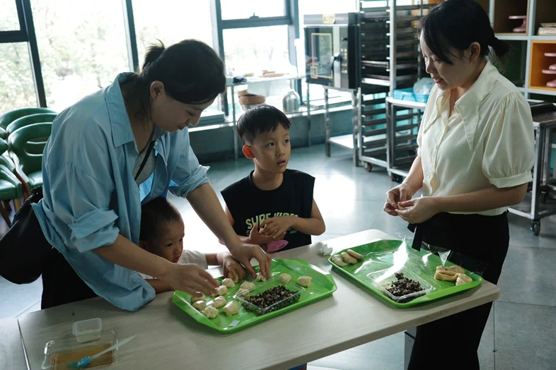 第一站直奔中国·徽州糕饼博物馆——国内首家糕饼主题博物馆太适合带娃了!跟着师傅揉面团、包梅干菜馅,烤得黄山烧饼酥到掉渣,还做了甜糯的徽墨酥,边做边听讲解员说糕饼里的徽商礼孝文化。
