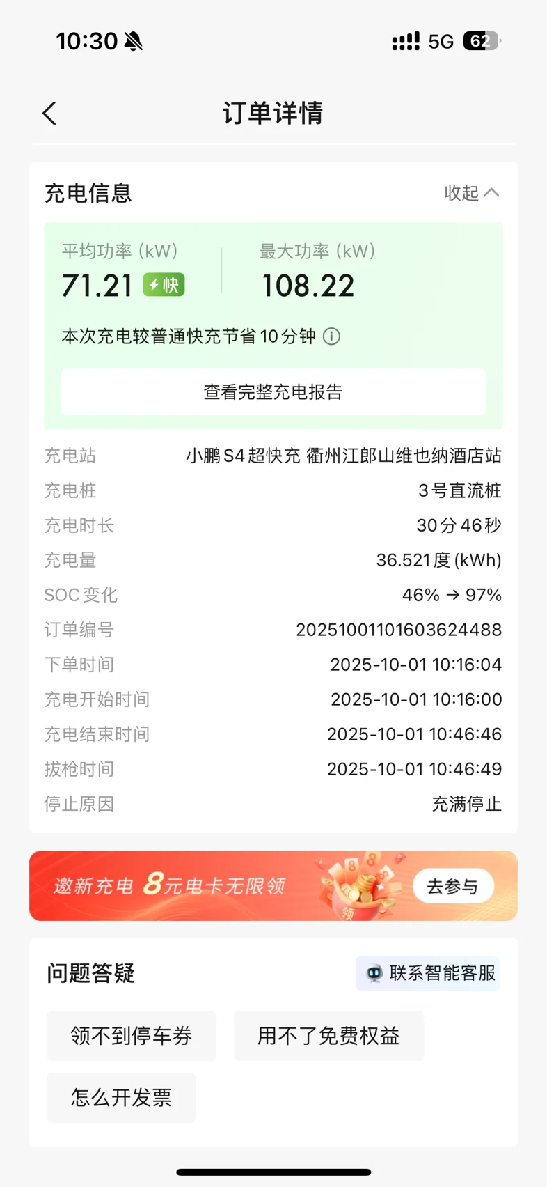 #满电黄金周,山河任我游# 2025年十一假期,从江苏到福州来了一场自驾游,本次行程小鹏车机规划溧宁-杭瑞-京台高速,这里必须要吐槽一下京台高速每个服务区都只有4个国网充电桩,且沿途几乎都是山,对电车来说充电不友好,中途2次进服务区,都发现都有好几辆电车在等位。但是不得不提路上发现的小鹏宝藏超冲,去程在小鹏江山维也纳超冲补电完成后,成功到达福州剩59km,回程福州补电完成后,仅剩6%到达江山维也纳小鹏超冲,真是非常惊险!@鹏友俱乐部 @充电小助手
