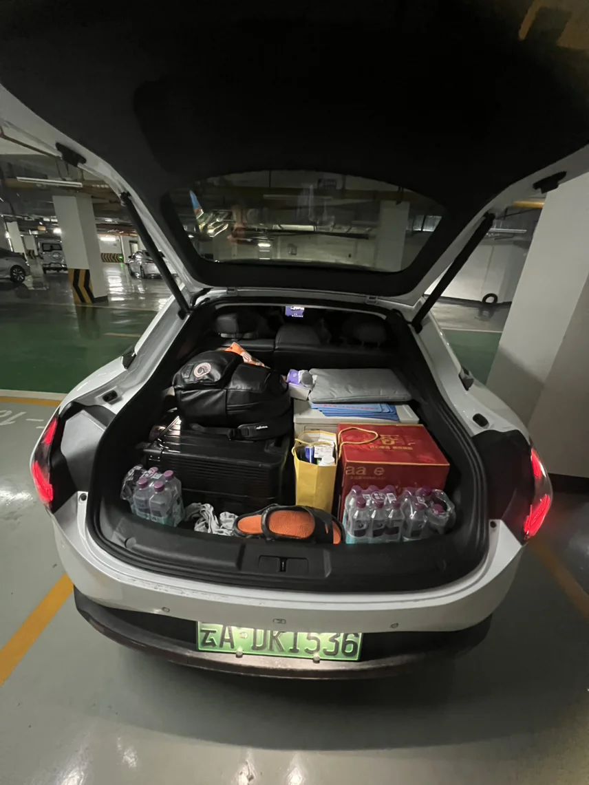 国庆开着小鹏M03出发从靠近四川的地方一路向南去昆明,在路上就是最好的安排了,我喜欢开车,去到不同的地方去感受不一样的城市,后备箱塞的满满当当。云南的高速沿途都是风景,风和日丽是出发的好时机,按耐不住内心的喜悦只想开着小鹏 M03 去外面看看这个世界。开了 358 公里,到达昆明,剩余电量百分之二十四,可继续行驶 141 公里,跑高速续航还能达到八五还是相当不错的,就看个人的脚法了。一路继续向南,来到了以弥勒佛同名的弥勒市,这就不得不来一趟弥勒佛这边拜一拜了,人山人海,节假日人就是多,下山就来到了弥勒市区的湖泉生态园,带上我的折叠椅一坐就是一个多小时,享受风景的同时还能给自己放放松。从昆明充了电就跑了弥勒一趟来回,从弥勒晚上赶回来的时候电也不多了,顺便首保也到了来做个保养,来的是买车的店昆明世博园店,新搬了 4S 店,整体比以前好多了,售后也很热情,我把问题一一描述了下,就进行首保及调试,再休息室坐着等待也是无聊就去看看其他车辆,并试驾了一下 P7,动力十足,确实很符合年轻人审美,回来就看车子已经洗好停车了,售后也描述下大概情况,基本都没什么问题,就是大灯蓝线还是没法彻底给我处理好,需要向厂家反馈情况,希望也能给我换了大灯,不然晚上确实有一定危险,我发给你们看一下图 8 是正常 M03 的大灯,中间几乎没有蓝线,光线也重合的刚刚好。