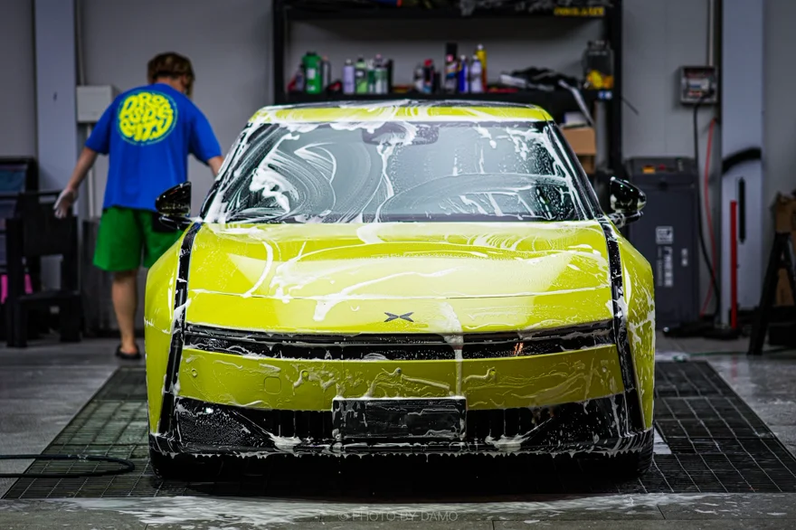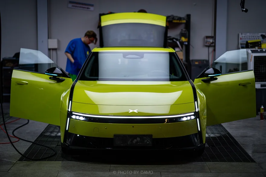 最后分享一期新P7洗车照片,这个律动黄在灯光下真的质感拉满啊!