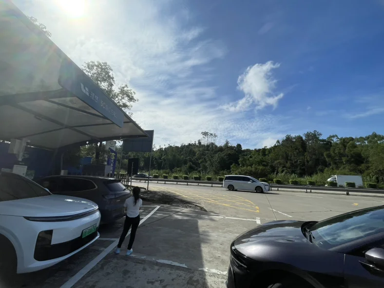 广昆高速筋竹服务区理想充电桩补充能量,如果小鹏自己的桩能够普及高速公路上那就完美了,让大伙一起来期待吧。