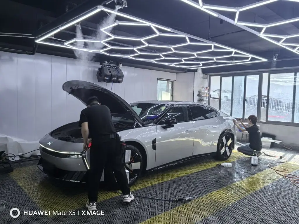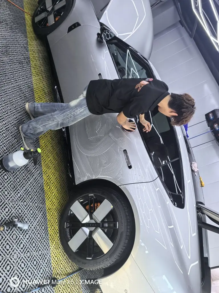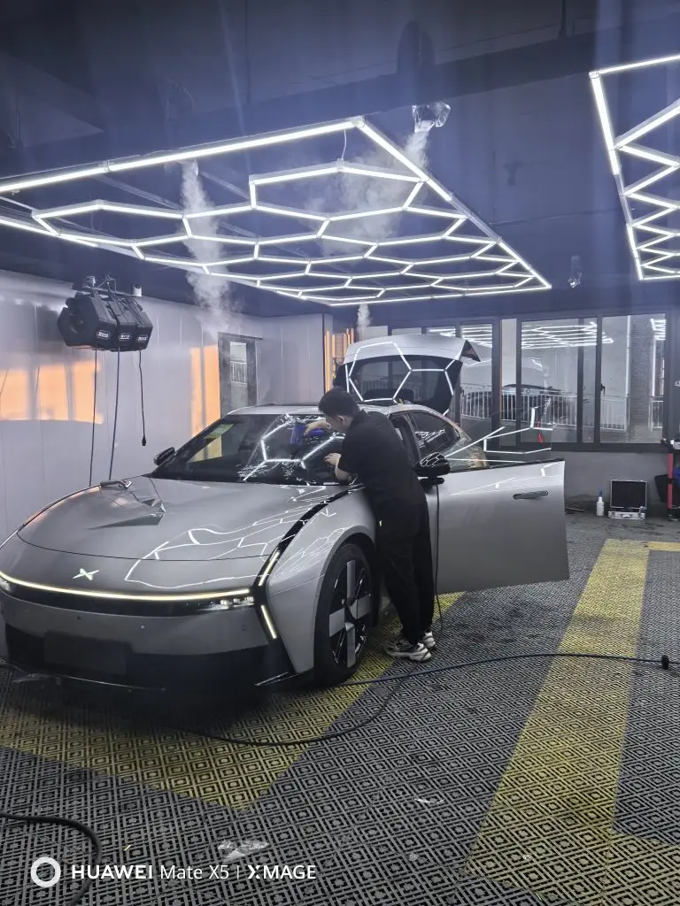 #小鹏P7晒单有礼# 昨日为爱车披上透明新衣,覆上清透薄膜,今朝相见,竟似换了人间。 它静驻光洁空间,身披细腻泡沫如晨露轻纱,在悉心擦拭下渐渐苏醒。鸥翼门轻展如羽翼,流畅线条在光影间低语。米色背景温柔相拥,未来感的车身与复古窗格无声对话。 此刻的车身,镀上了一层含蓄的柔光,倒映着天光云影,宛若月下静湖泛起的涟漪。这不仅是护甲,更是为旅程注入的诗意——每一次出发,都将是与美好时光的温柔相逢。
