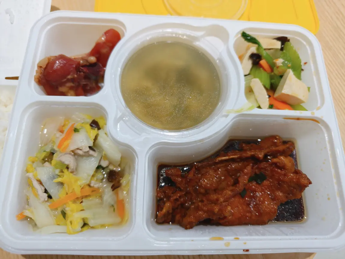 由于去的比较晚,快完成时天都黑了,工作人员贴心的给我准备了晚饭,你别说这快餐还挺好吃的,两个大荤,荤素搭配也可以。