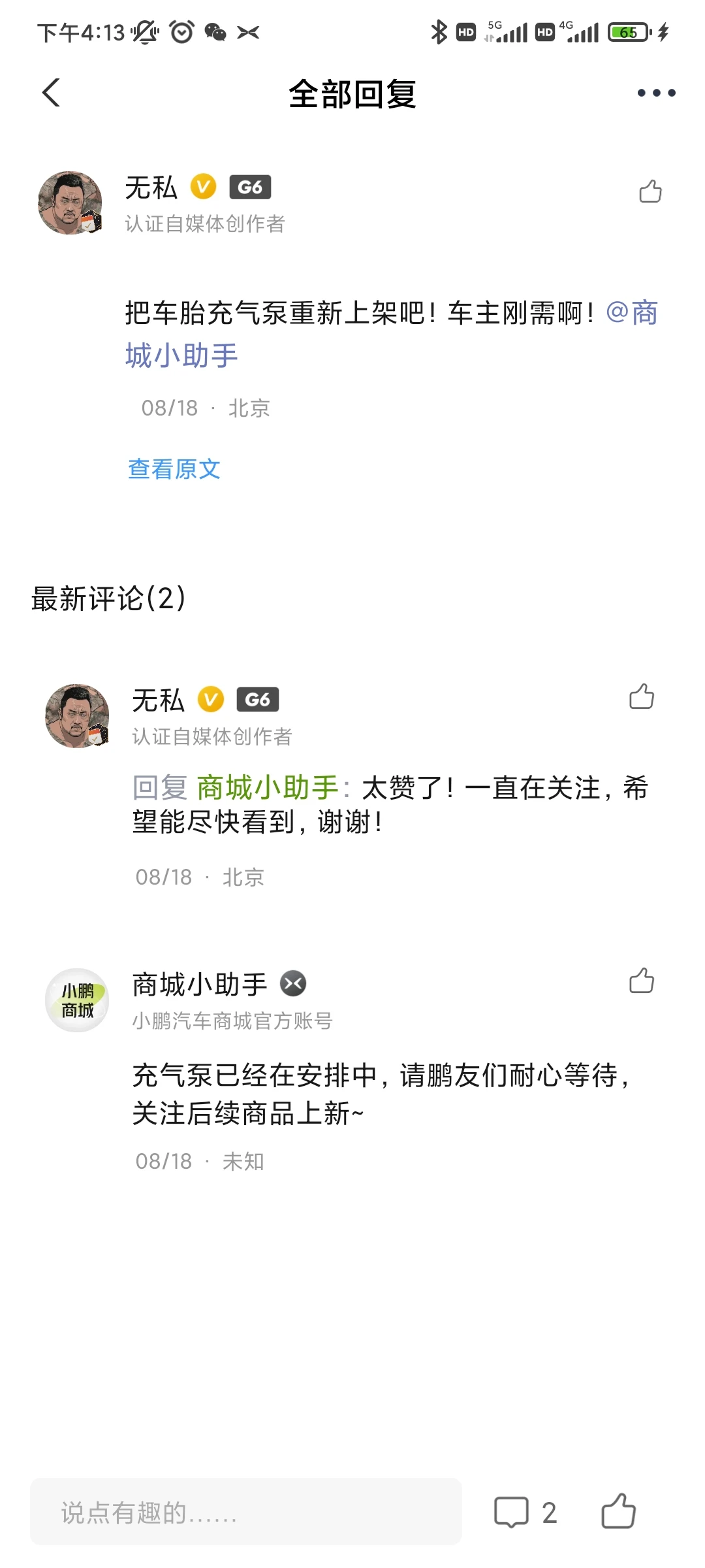能否回复一下,轮胎充气泵到底何时上架!两个月了,也不是自己开发,采购流程这么复杂么。。再也没有消息了,商城里的商品上架能不能做个预告啊