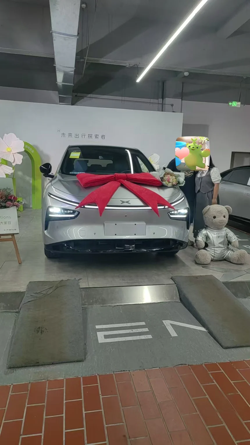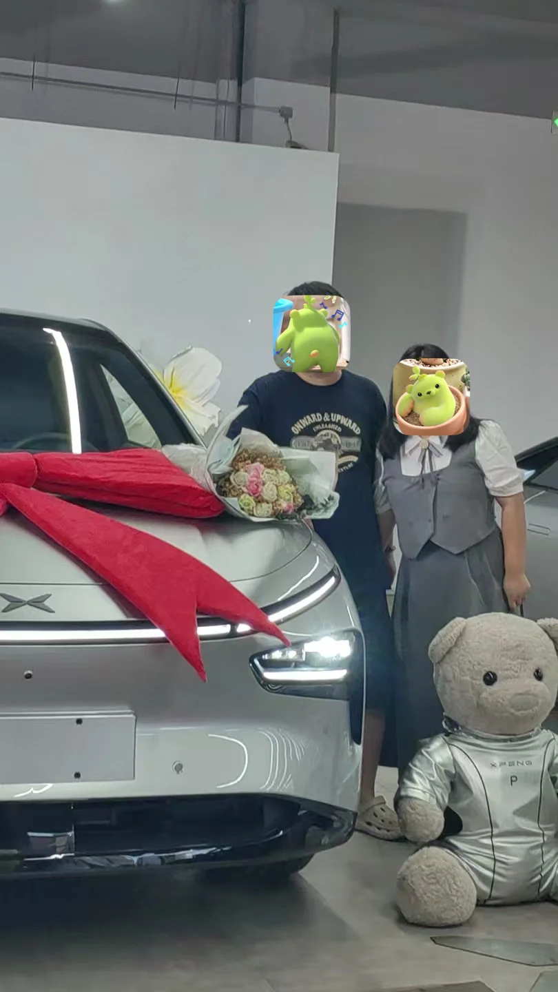 一家人开开心心,提车啦,小鹏你的首选