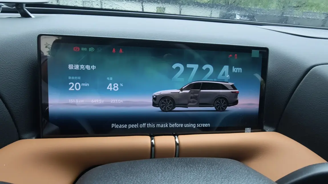 2️⃣作为小鹏的自营超充站(S系列),其技术实力在雨天得到了充分检验。我的车是支持800V高压平台的G9,即使在这样相对低温潮湿的雨天,充电效率也几乎没有受到影响。屏幕上的电压数值稳稳地攀上650V+,看着续航里程以肉眼可见的速度向上飙升,那份“电量无忧”的安心感实在难以言表。
