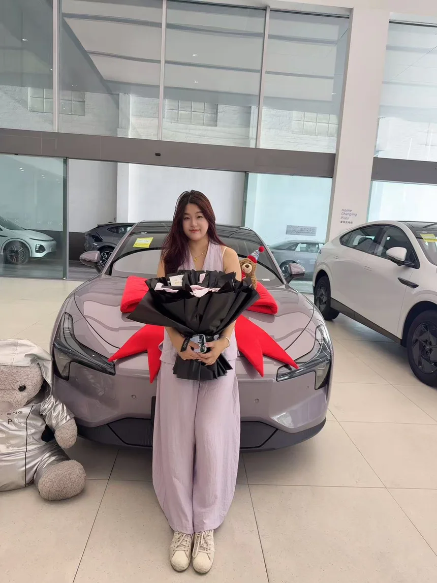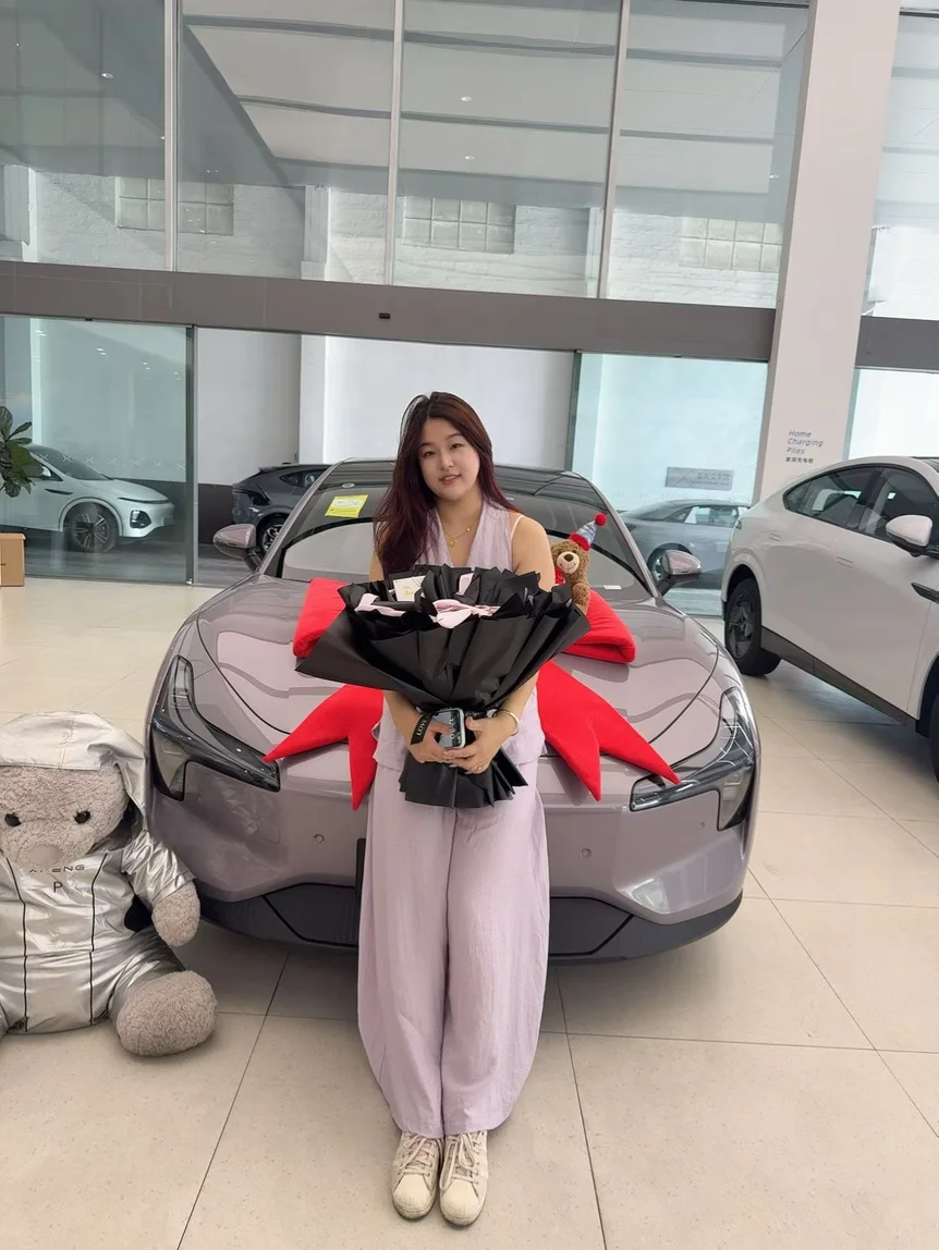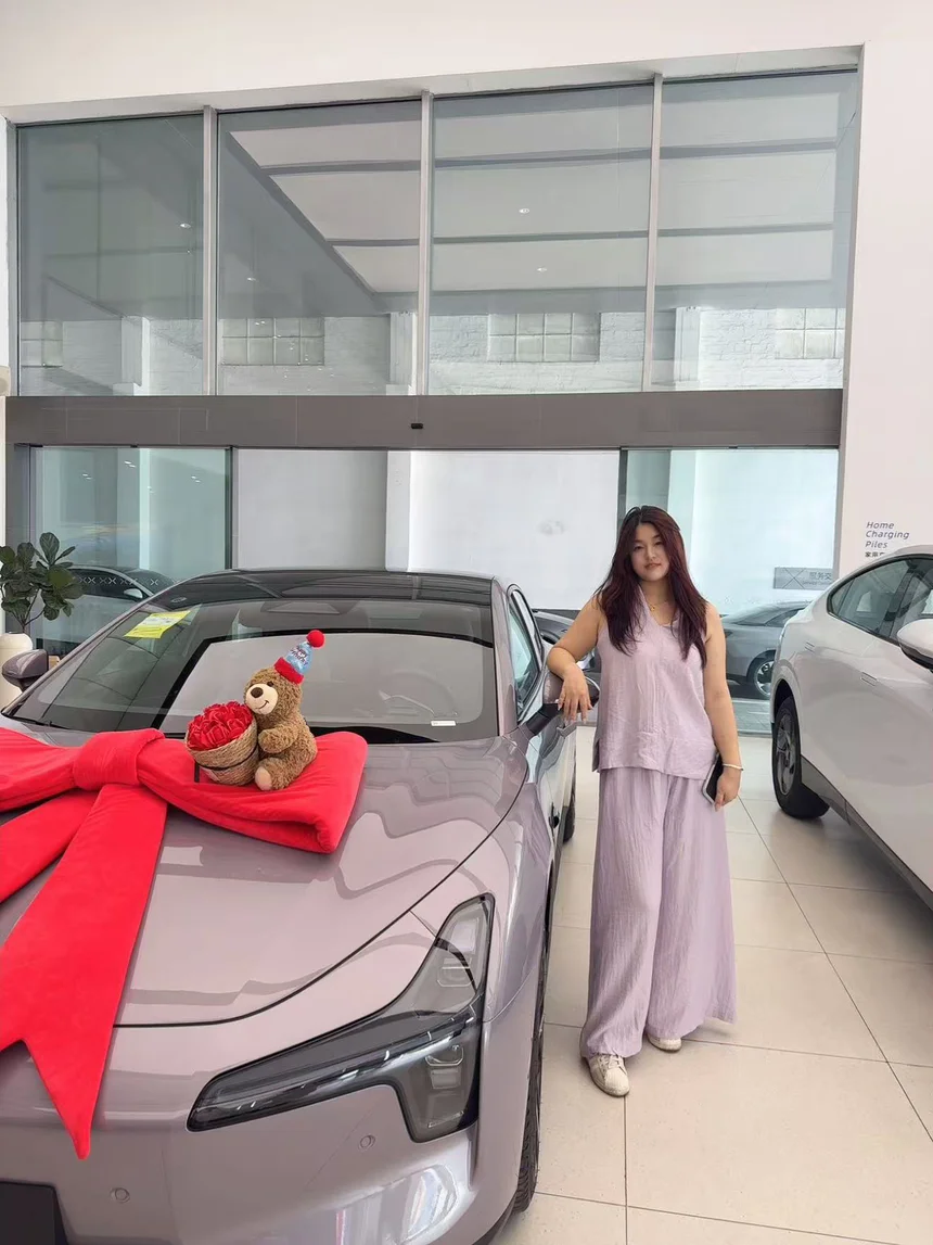 终于等到提车这天啦!当我在小鹏展厅看到我的M03时,真的被惊喜到了——大大的红色蝴蝶结、可爱的小熊装饰,还有一束超美的花束,仪式感直接拉满!