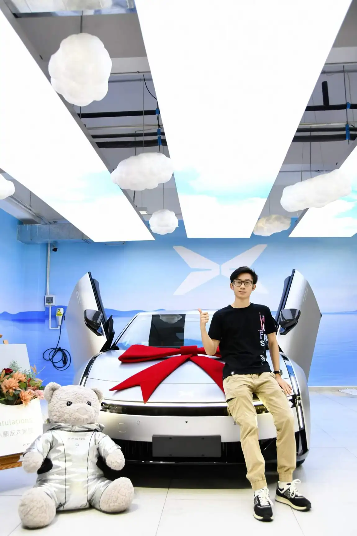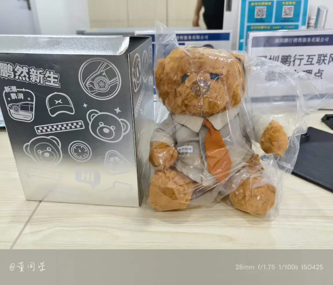 提车经历必须好好夸夸!交付中心把我的新车布置得仪式感满满(图4的展陈区太出片了!),工作人员详细讲解功能时,我就像个拿到新玩具的小孩。最惊喜的是收到了“鹏然新生”的小熊礼盒(图3),太可爱了!人车合影环节,我围着车拍了几十张,每一张都像时尚大片,这波“新一代出片神器”的称号它担得起!
