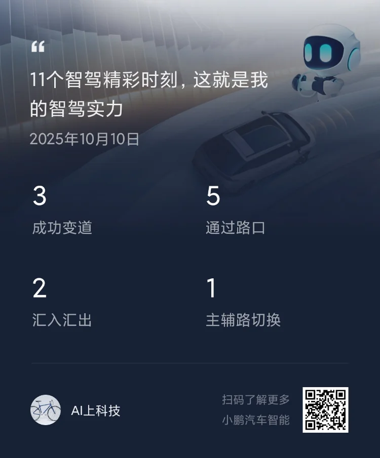 首次智驾1.场景:雨天+夜晚,车流量不小。2.总体感觉:超预期,智驾确实到了可用的阶段。3.印象最深:人机共驾,我认为这个是目前的刚需。4.一个问题:快速路上,可能是因为右边有矮墙,车子不居中,特别靠左侧;到了平路上,可能是因为右侧有绿植,也是非常靠左侧。期待:无限OTA ,持续进步,终将自动驾驶。@XP-Candice婷婷 #小鹏G7##车主报告#